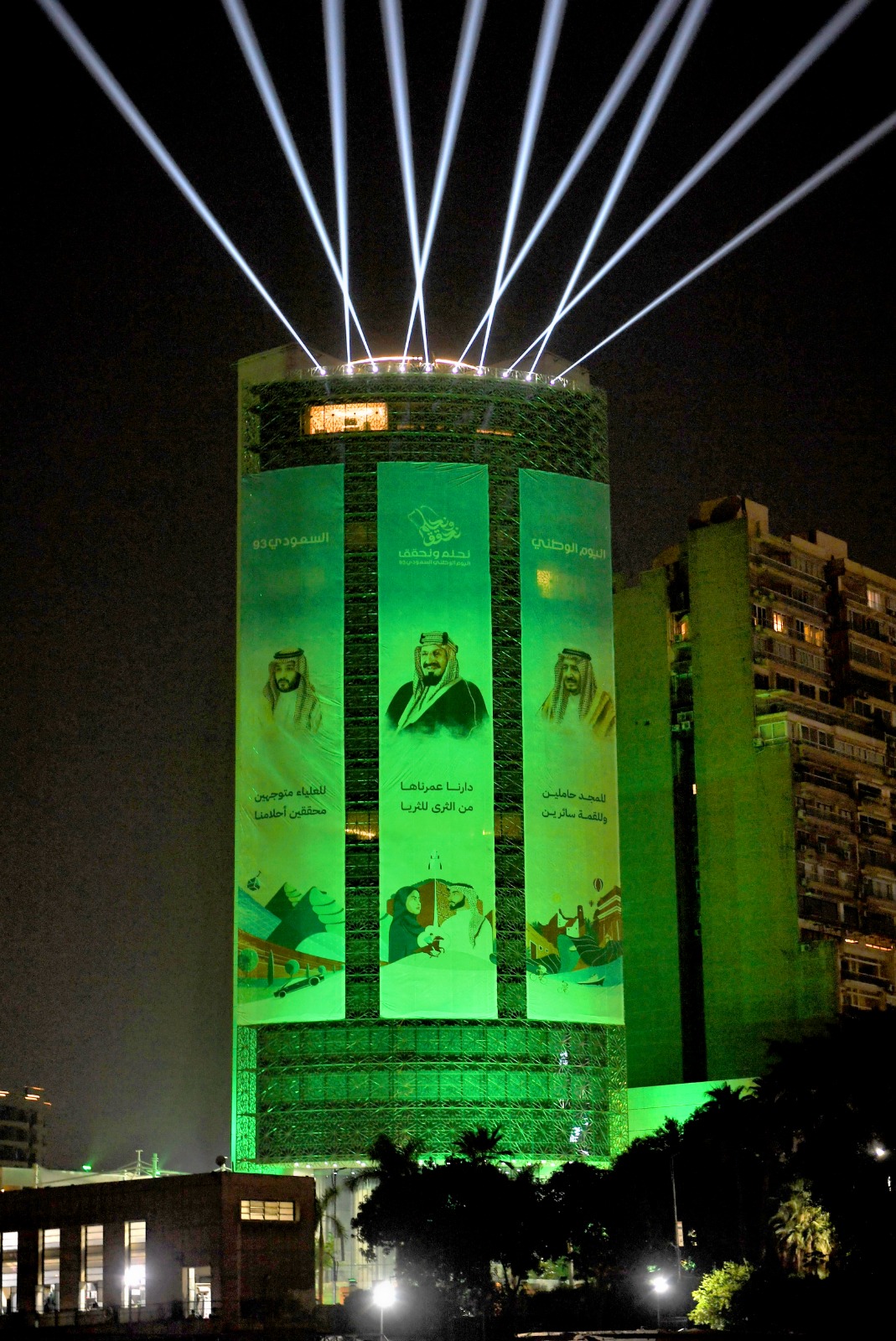 السفارة السعودية بالقاهرة تزين مبناها بمناسبة اليوم الوطني الـ 93 | صور