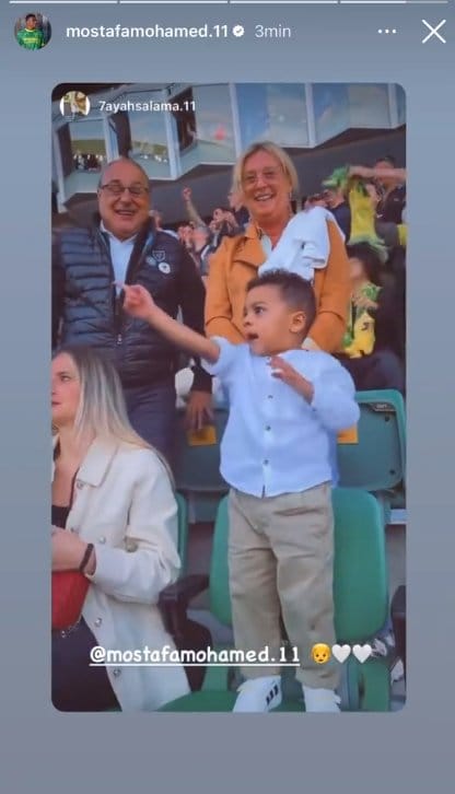 وتواجد نجل مصطفى محمد في مدرجات فريق نانت، وشجع والده من المدرجات، حيث ظهر ذلك بمقاطع فيديو لقت انتشارًا كبيرًا عبر مواقع التواصل الاجتماعي والقنوات الناقلة لمباراة الفريق أمس التي انتهت بالفوز على لوريان بنتيجة 5-3، وتسجيل الأناكوندا هدف عالمي من ركلة حرة.