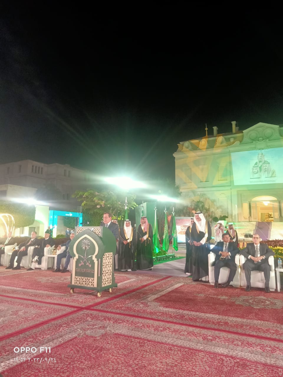 وألقى السفير أسامة بن أحمد نقلي، كلمة أكد فيها متانة العلاقات المصرية السعودية، وهنأ أبناء المملكة بالعيد اوطني الـ93.