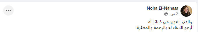 وكتبت نهى أحمد النحاس عبر حسابها على فيسبوك: والدي العزيز في ذمة الله.. أرجو الدعاء له بالرحمة والمغفرة.