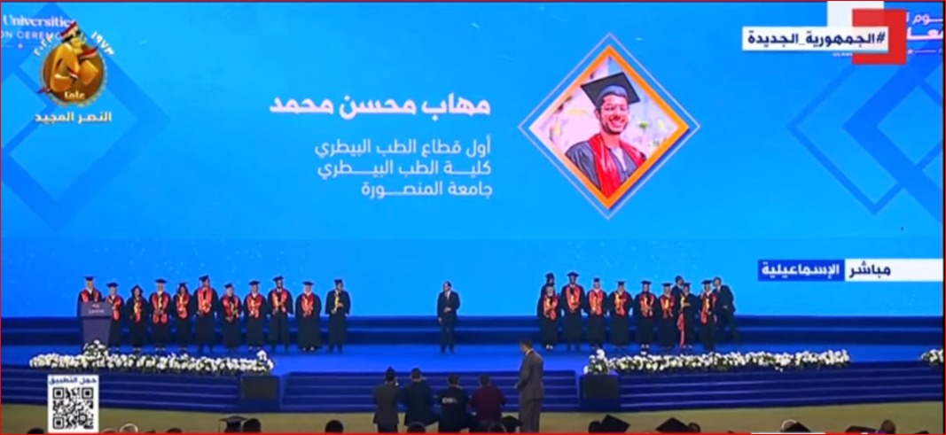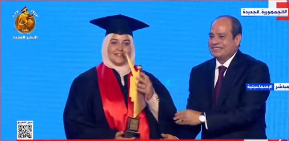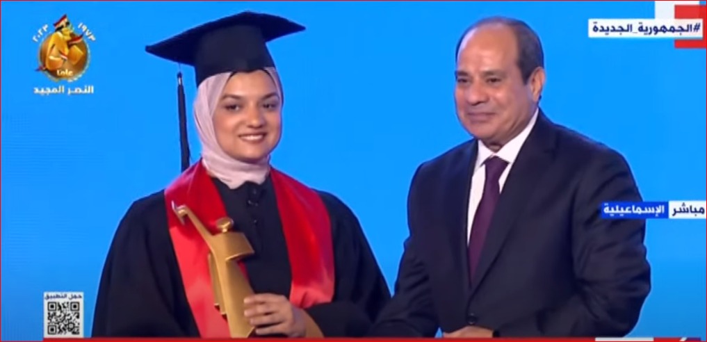 كرم الرئيس عبدالفتاح السيسي، رئيس الجمهورية، عددا من أوائل الطلاب الخريجين بالجامعات المصرية، في استاد قناة السويس، بمحافظة الاسماعيلية، ضمن احتفالية يوم تفوق جامعات مصر.