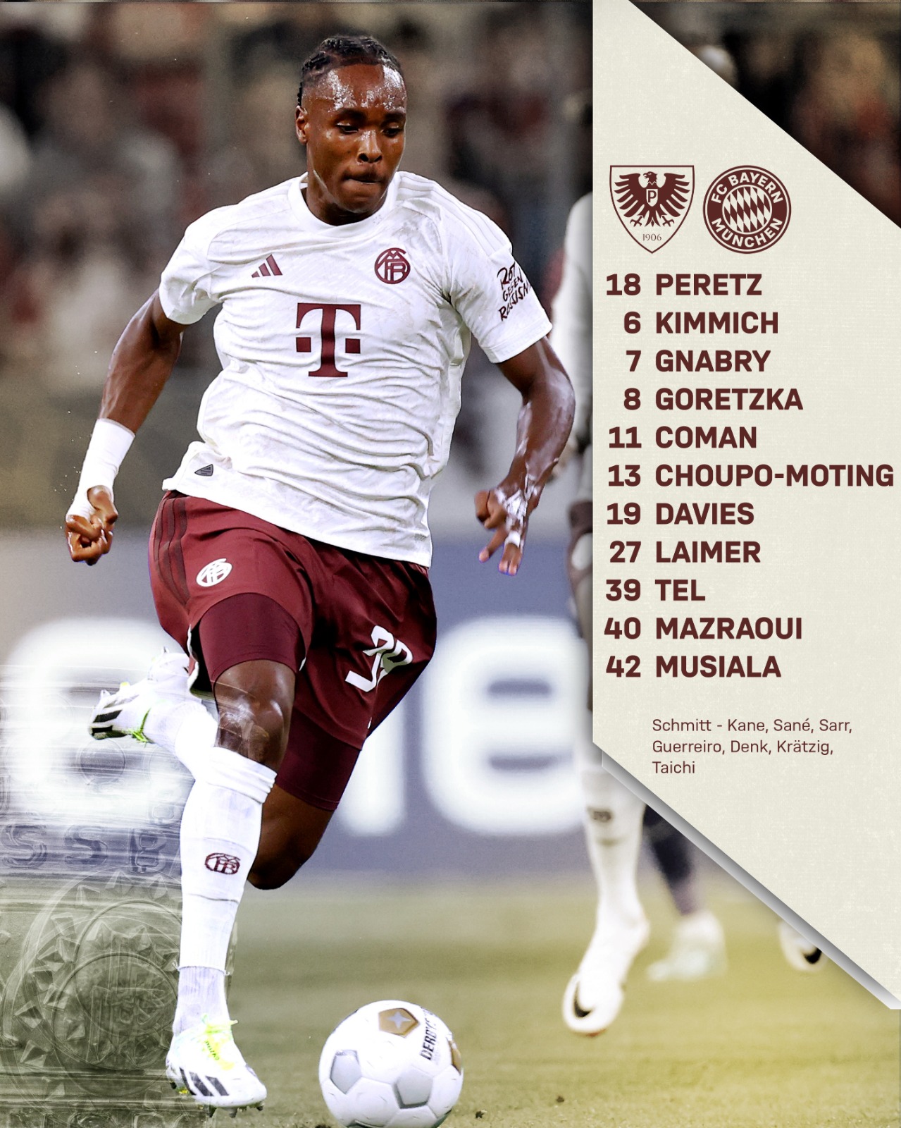 وقرر المدرب الألماني توماس توخيل مدرب بايرن ميونخ، أن يدخل مباراة فريقه لمواجهة فريق مونستر في كأس ألمانيا بتشيكل مكون من: