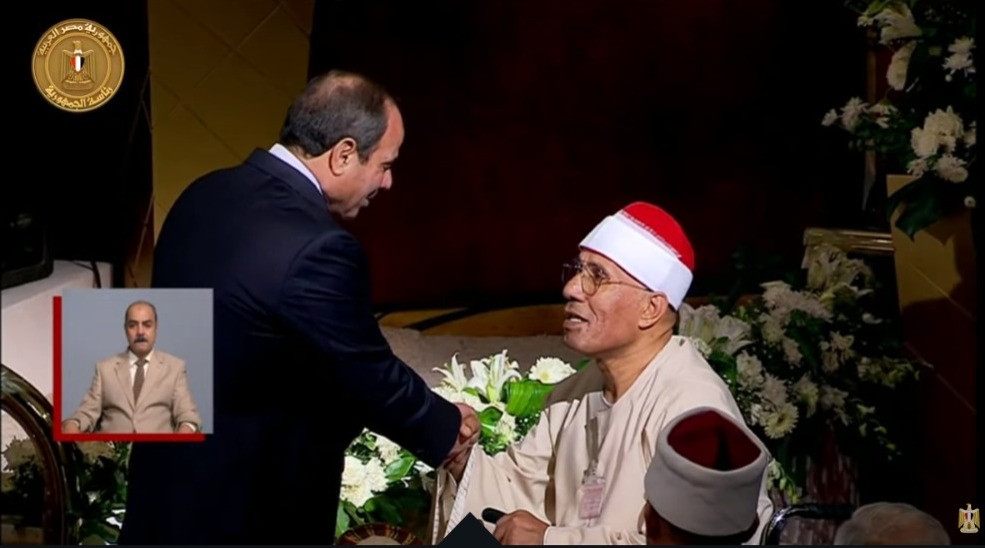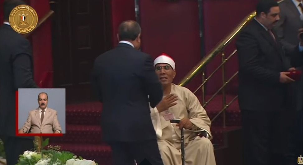 على كرسي متحرك.. الرئيس السيسي يكرم القارئ عبد الفتاح الطاروطي