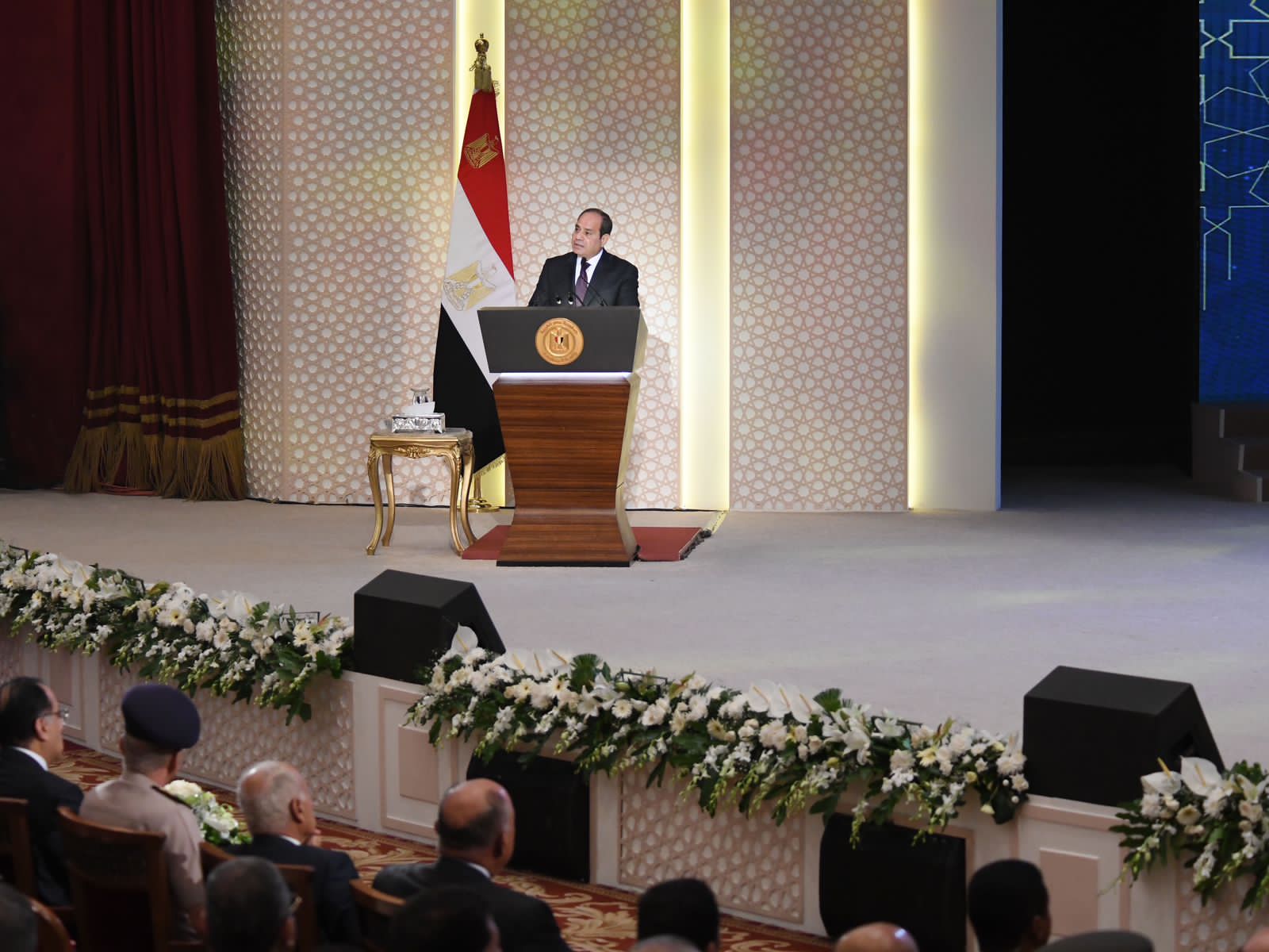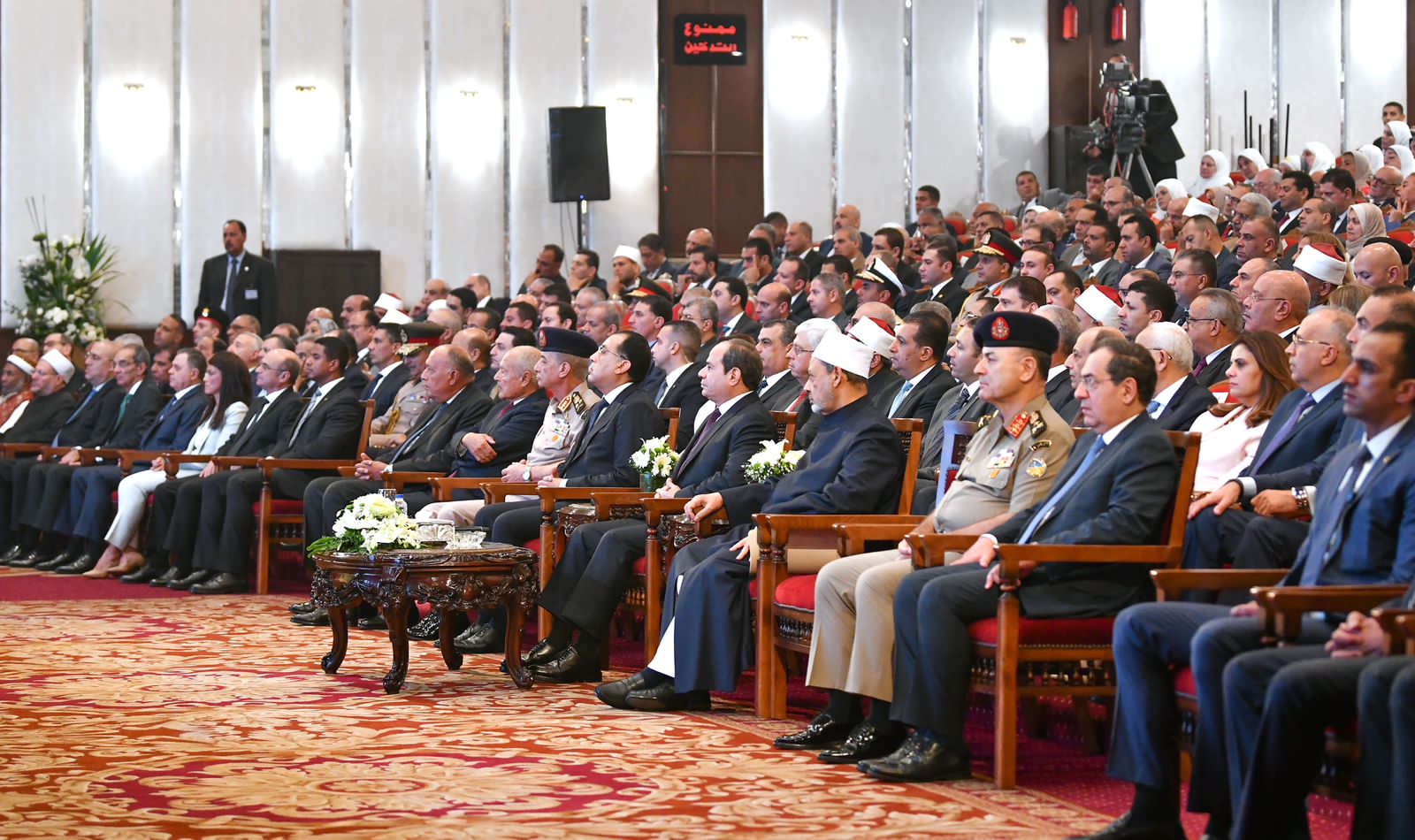 وقال الرئيس عبد الفتاح السيسي، رئيس الجمهورية، في مستهل كلمته باحتفالية المولد النبوي: بسم الله الرحمن الرحيم، فضيلة الإمام الأكبر شيخ الأزهر الشريف، العلماء والأئمة الأجلاء السيدات والسادة، أود في البداية أن أتوجه بخالص التهنئة لشعب مصر العظيم ولجميع الشعوب العربية والإسلامية بمناسبة ذكرى مولد النبي الكريم سيدنا محمد، "صلى الله عليه وسلم" داعيا الله "عز وجل" أن يعيد هذه الذكرى المباركة بالخير والسلام على مصر والإنسانية بأسرها.