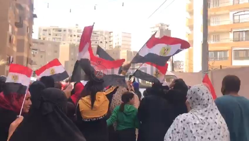 واحتشد المواطنون أمام مقر الشهر العقاري، واحتفلوا بتأييدهم للرئيس عبد الفتاح السيسي بالطبل البلدي والمزمار، فيما قامت بعض السيدات بالرقص رافعات الأعلام المصرية.