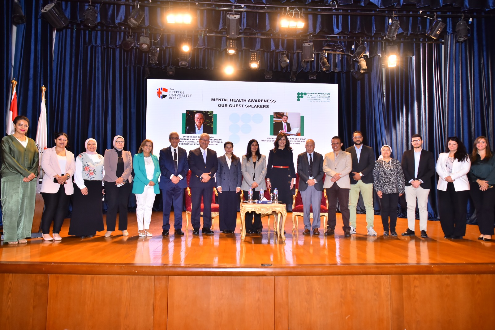 ووقع البرتوكول الدكتور يحيي بهي الدين نائب رئيس الجامعة البريطانية للبحوث والمشروعات، والسفيرة نبيلة مكرم، بحضور ياسمين خميس، عضو مجلس أمناء الجامعة البريطانية في مصر، ولميس نجم، مستشار محافظ البنك المركزي للمسئولية المجتمعية، والدكتورة شادية فهيم عميد كلية الآداب والإنسانيات بالجامعة البريطانية، والدكتور ناصر لوزة، استشاري الطب النفسي، ومدير مستشفى بهمن، ورئيس الاتحاد العالمي للصحة النفسية، والدكتور عبد الناصر عمر أستاذ الطب النفسي ورئيس مجلس الإدارة والرئيس التنفيذي لمستشفى المشفى.