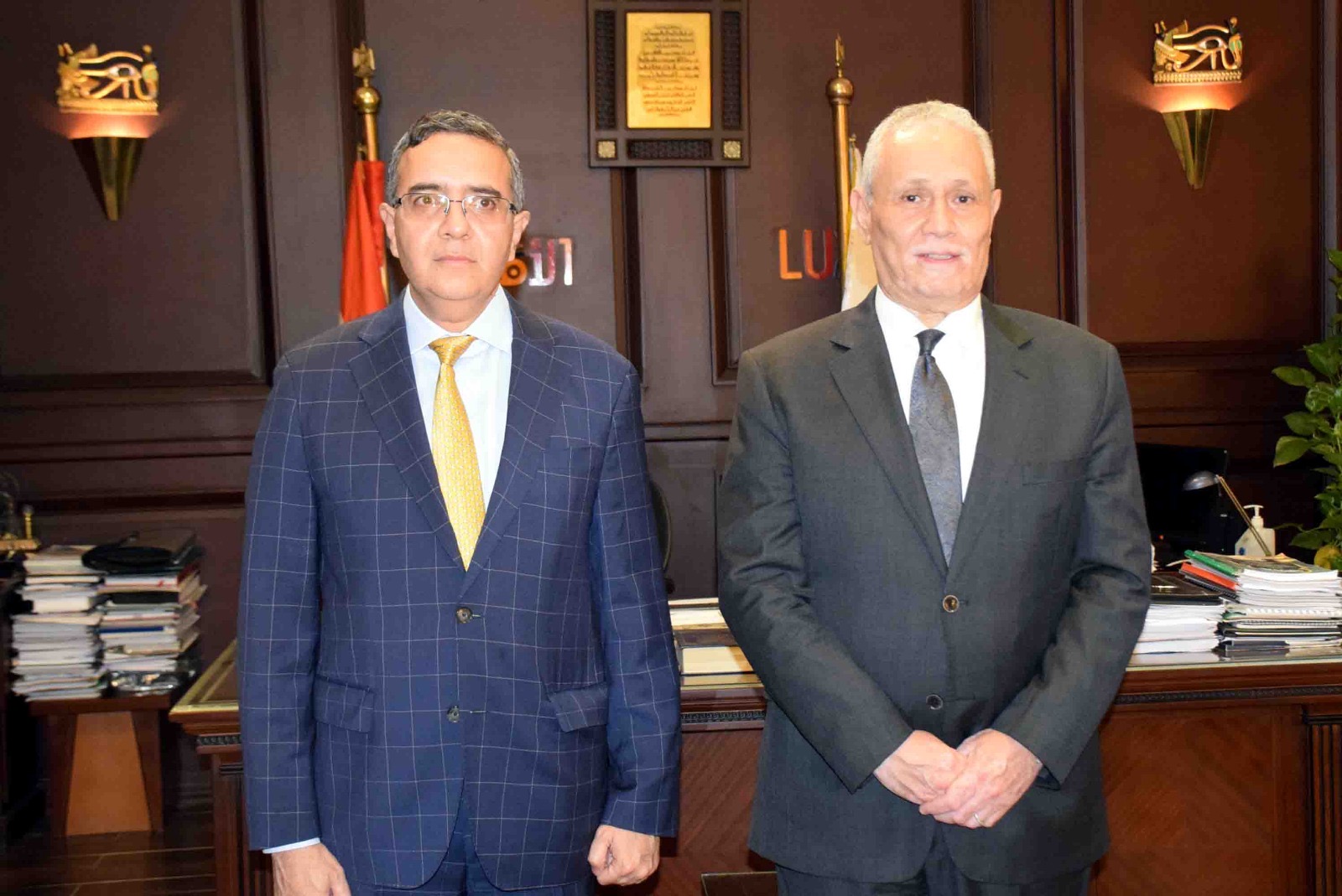 و استقبل المستشار مصطفى ألهم محافظ الأقصر، بمقر ديوان عام المحافظة سفير الهند بالقاهرة "أجيت جوبتيه" خلال تواجده بمحافظة الأقصر لزيارة المعالم الآثرية حيث رحب محافظ الأقصر بالسفير الهندي مثمنًا زيارته للأقصر.