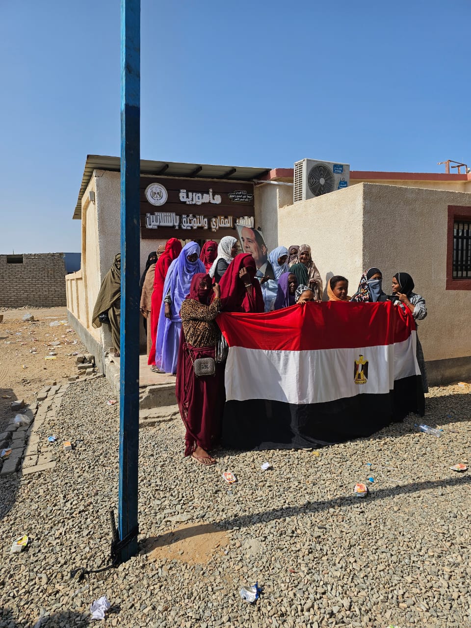 رافعين علم مصر.. توافد سيدات الشلاتين على الشهر العقاري لتحرير توكيلات تأييد للرئيس السيسي |صور