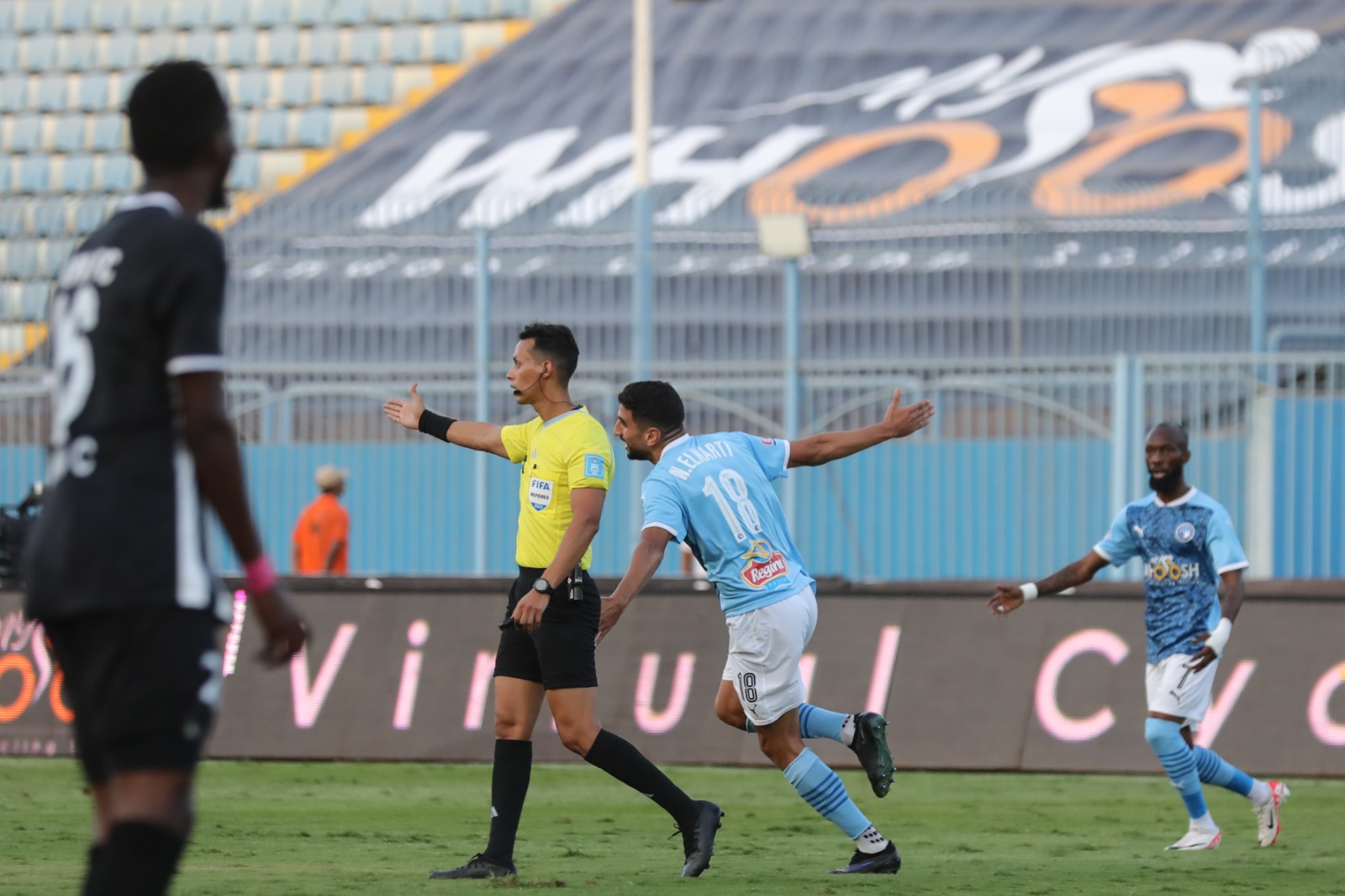 وفي الشوط الثاني بالدقيقة 56 أضاف فريق بيراميدز الهدف الثالث عن طريق لاعب مصطفى فتحي.