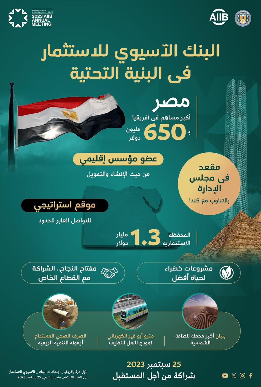 اهتمام دولي باستضافة مصر لاجتماعات البنك الآسيوي للاستثمار في البنية التحتية
