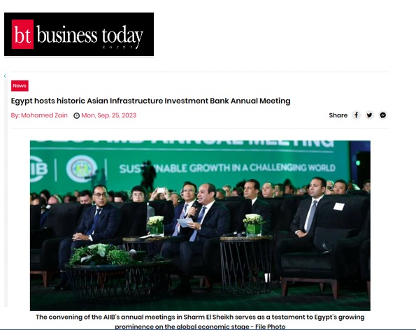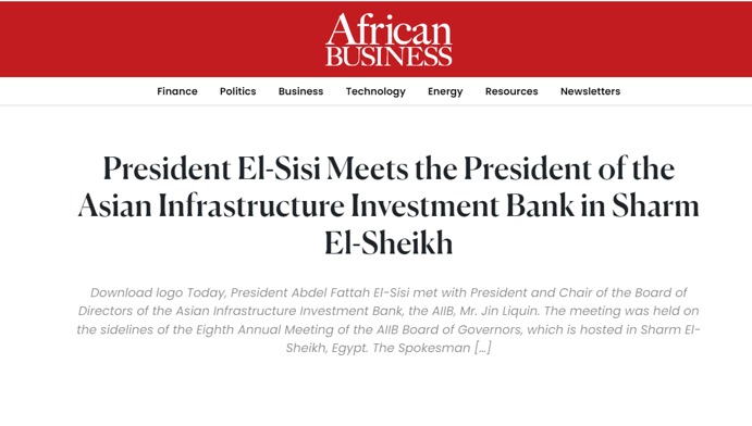 وألقت مجلة أفريكان بيزنس، الضوء على حضور الرئيس السيسي، الجلسة الافتتاحية للاجتماعات السنوية بشرم الشيخ تحت عنوان: النمو المستدام في ظل عالم ملئ بالتحديات.. ونقلت صحيفة نيوز بريس الأمريكية، عن الدكتور محمد معيط، وزير المالية، قوله: البنك الآسيوي للاستثمار في البنية التحتية يلعب دورًا مهمًا في تحقيق التنمية المستدامة في أفريقيا، ويحرص على ضخ استثماراته لتحسين البنية التحتية بالدول الأعضاء؛ مما يساعد على توفير حياة كريمة للشعوب وتعزيز الاتصال بين أفريقيا وآسيا.