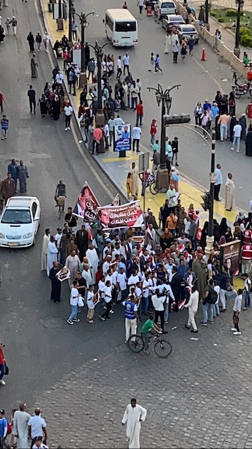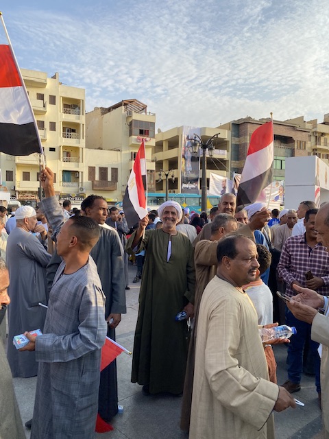 وتوافد الآلاف من المواطنين وأعضاء هيئة التدريس والأكاديميين والطلاب وممثلي النقابات والأحزاب السياسية على ميدان سيدي أبو الحجاج للاحتفال بانتصارات أكتوبر، ومناشدة الرئيس عبد الفتاح السيسي، للترشح في الانتخابات الرئاسية، كما ارتدى بعض المشاركين تيشيرتات مطبوع عليه تحيا مصر، بنحبك يا ريس.