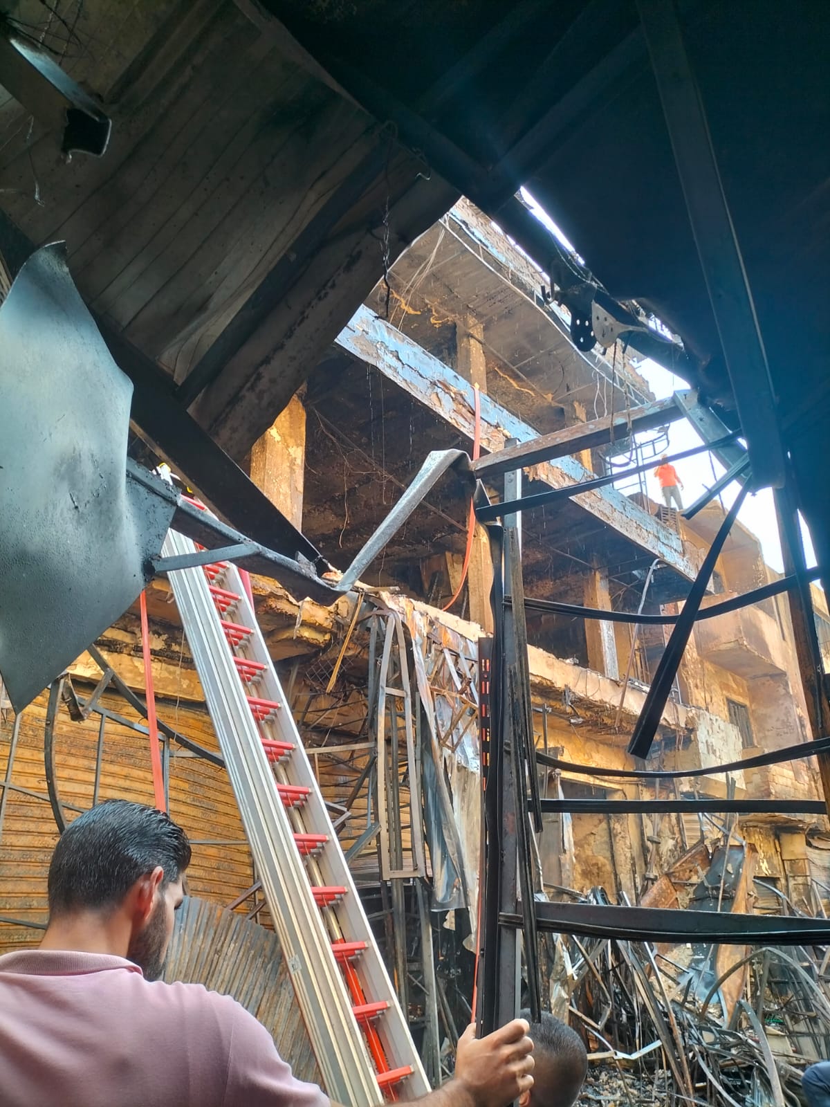 محلات تجارية تتحول لكوم رماد.. لقطات من حريق سوق العتريس بالسيدة زينب