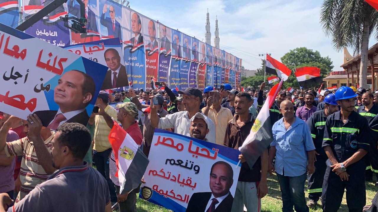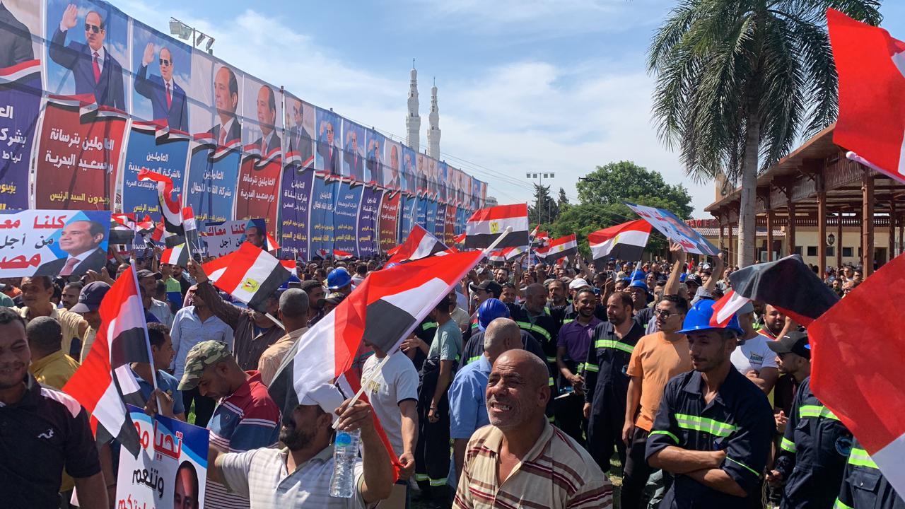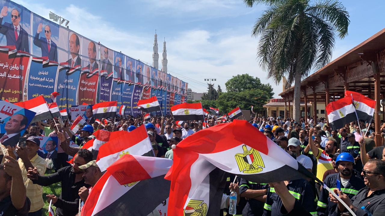 وشهدت الاحتفالية حالة من الفرحة والبهجة، رفع خلالها العاملون أعلام مصر وصور الرئيس عبد الفتاح السيسي، وذلك بعد ساعات من إعلانه الترشح لرئاسة الجمهورية.