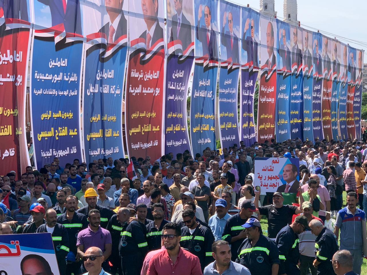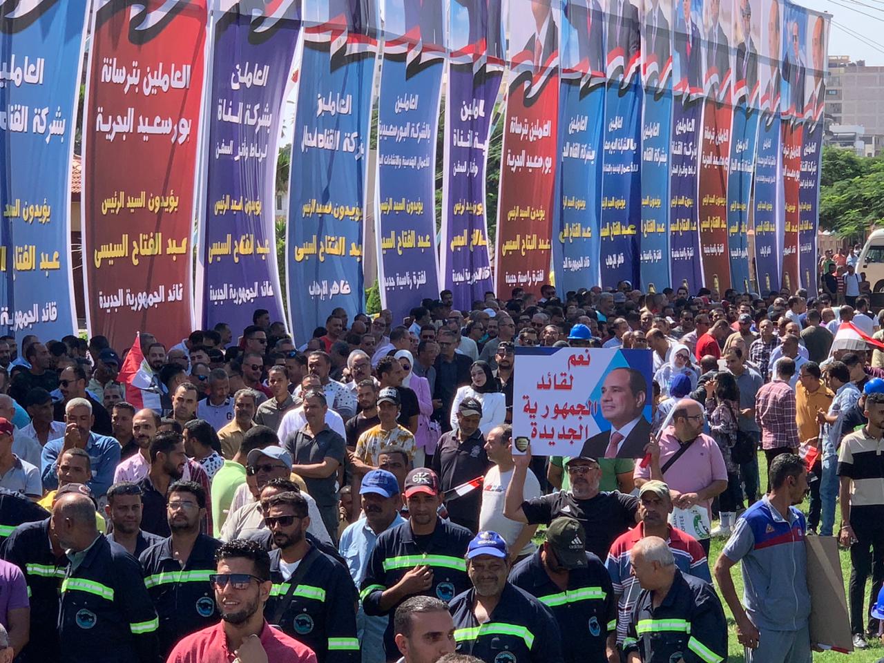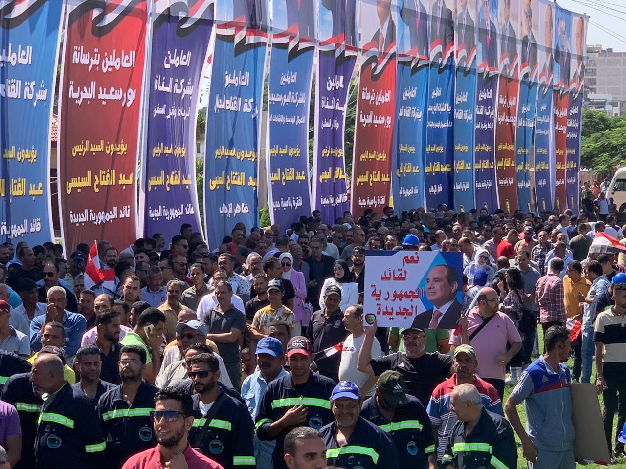وشهدت الاحتفالية حالة من الفرحة والبهجة، رفع خلالها العاملون أعلام مصر وصور الرئيس عبد الفتاح السيسي، وذلك بعد ساعات من إعلانه الترشح لرئاسة الجمهورية.