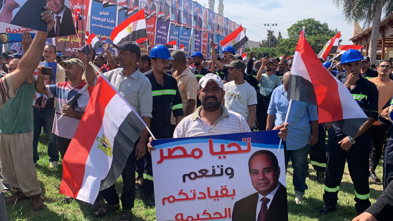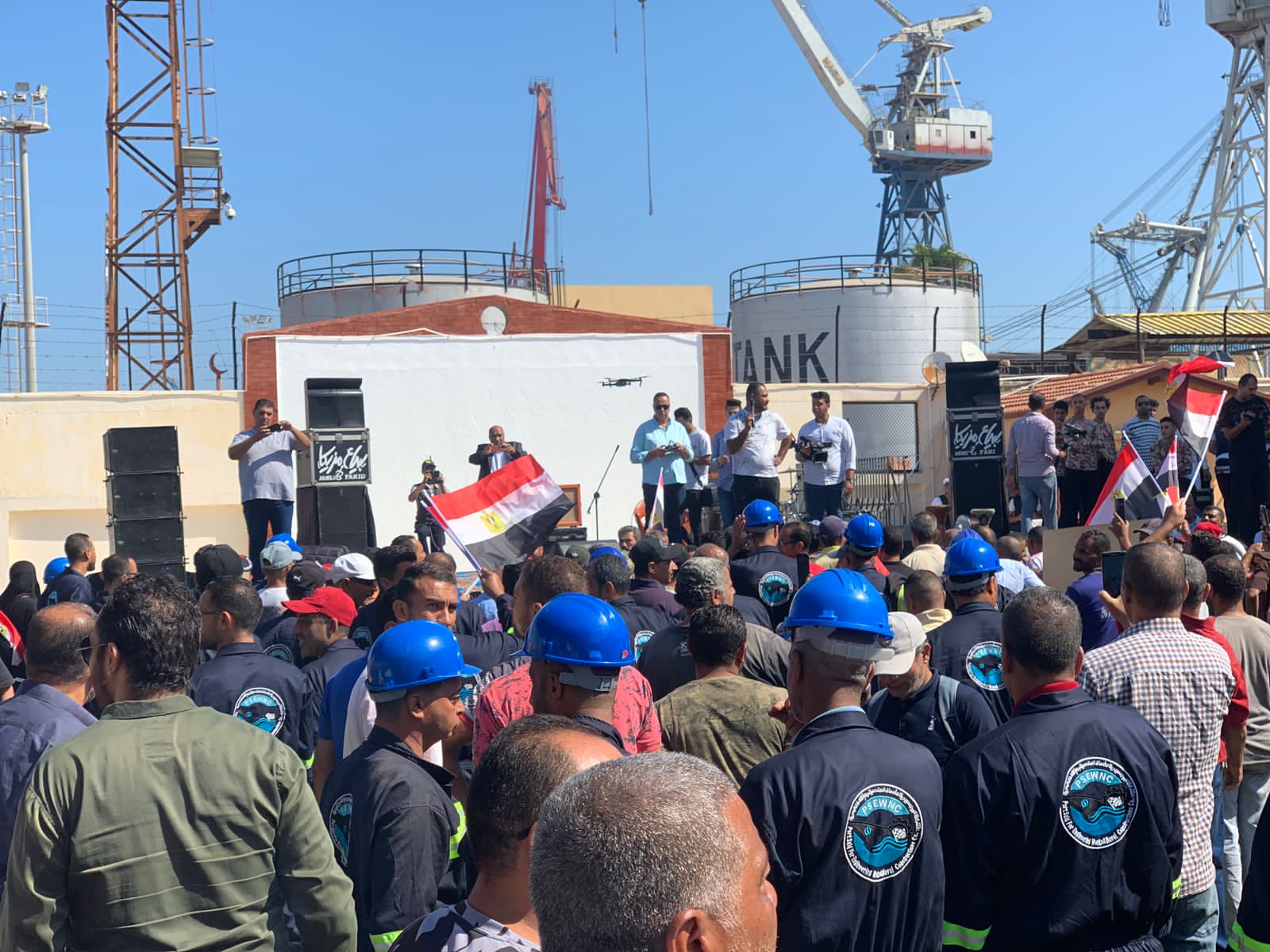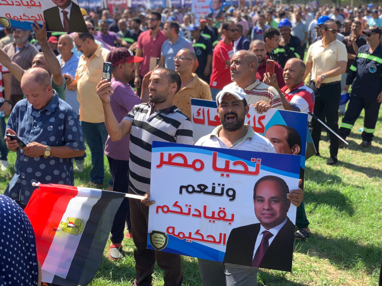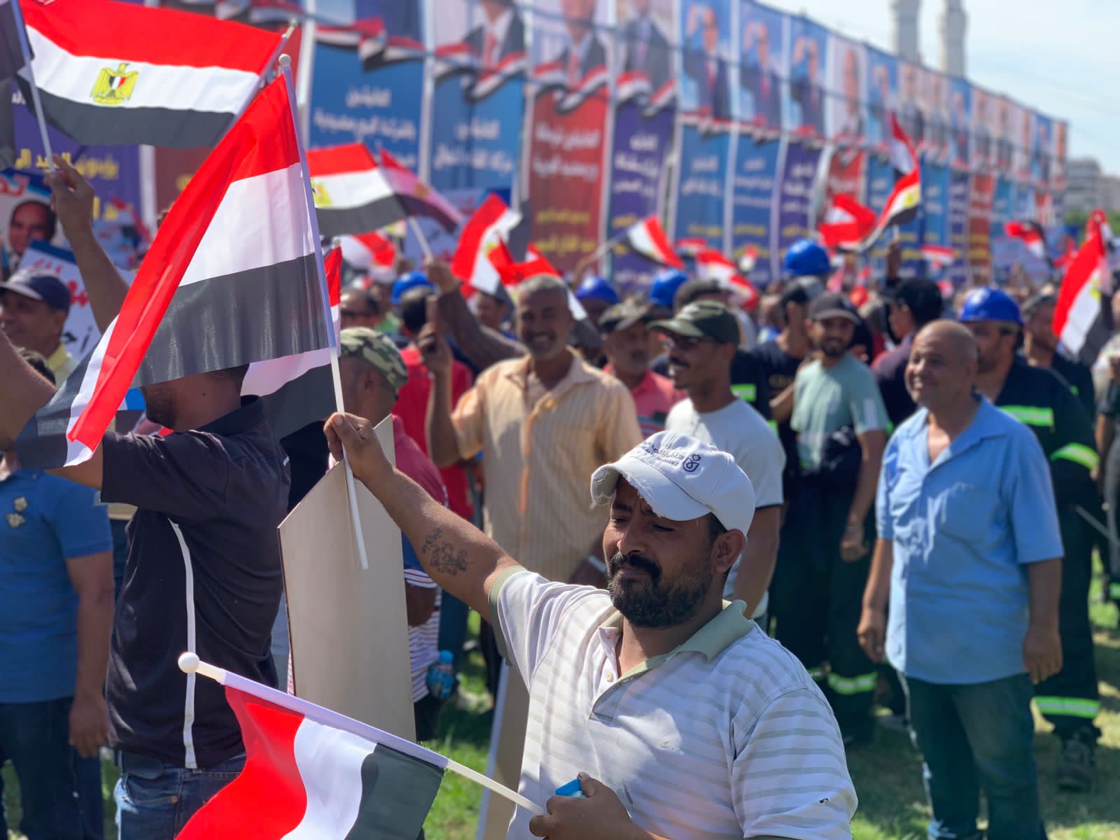 وشهدت الفاعلية عددًا من الفقرات الفنية الوطنية المتنوعة، وتفاعل معها العاملون بالغناء وارتفعت أعلام مصر وصور الرئيس.