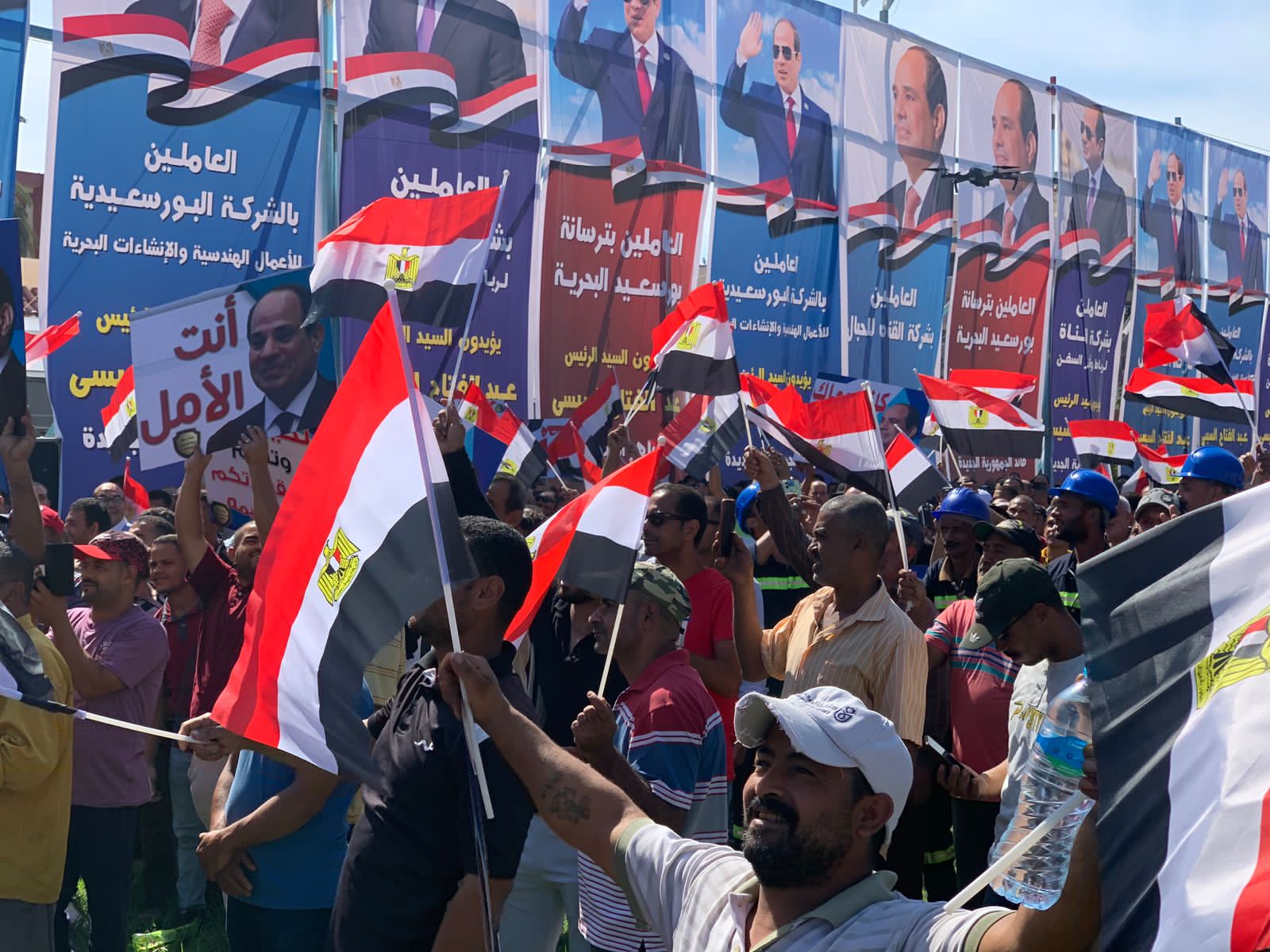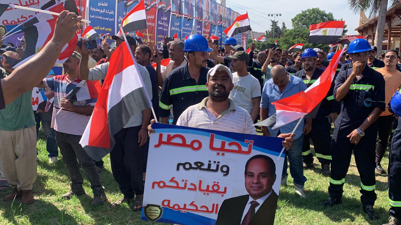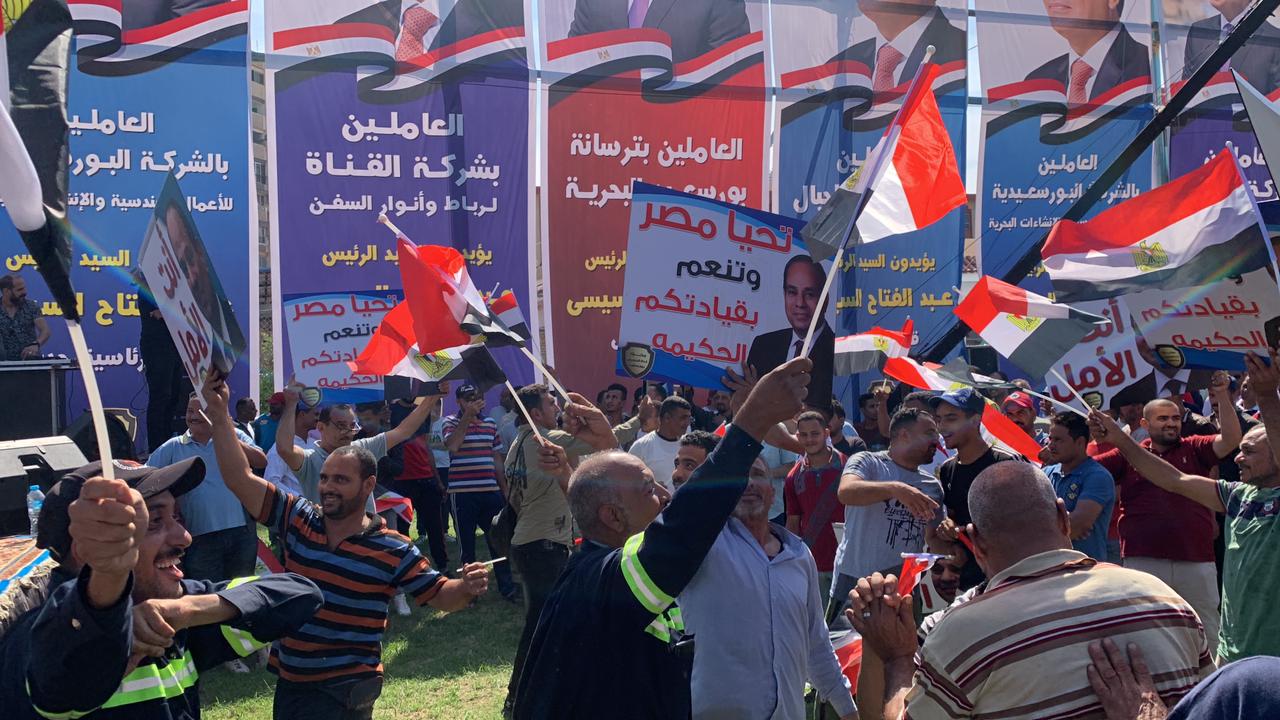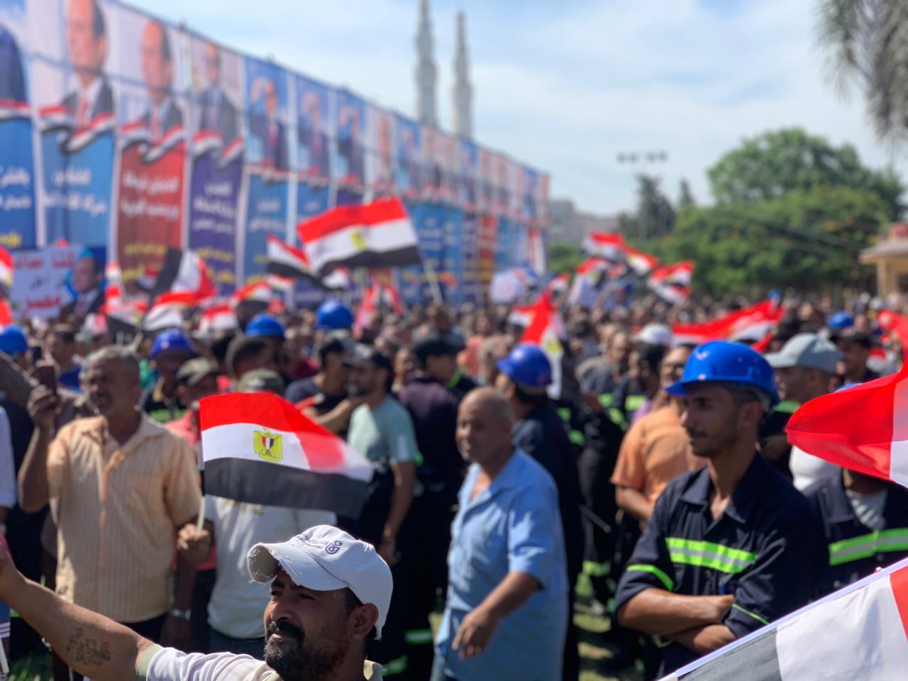 وشهدت الفاعلية عددًا من الفقرات الفنية الوطنية المتنوعة، وتفاعل معها العاملون بالغناء وارتفعت أعلام مصر وصور الرئيس.
