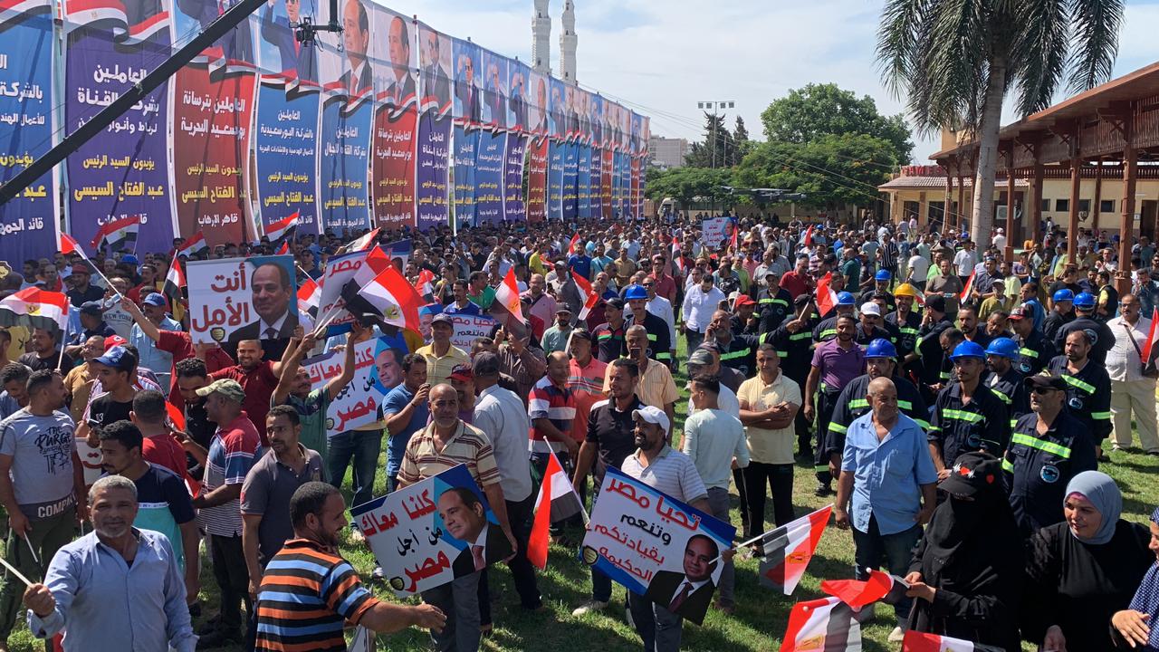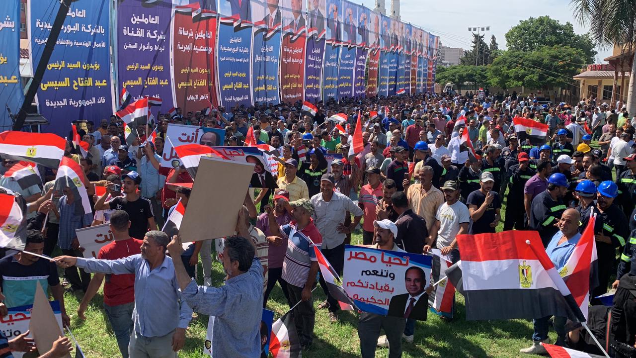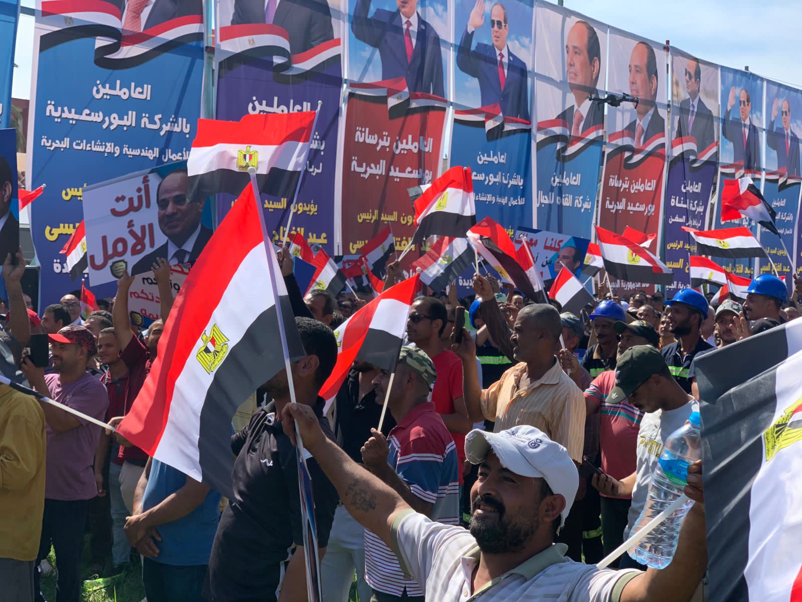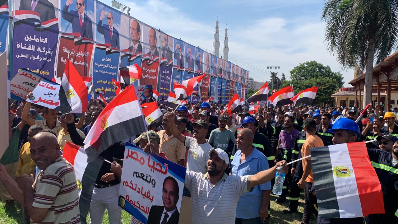 وشهدت الفاعلية عددًا من الفقرات الفنية الوطنية المتنوعة، وتفاعل معها العاملون بالغناء وارتفعت أعلام مصر وصور الرئيس.