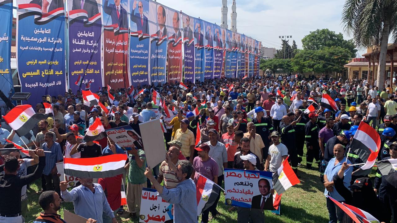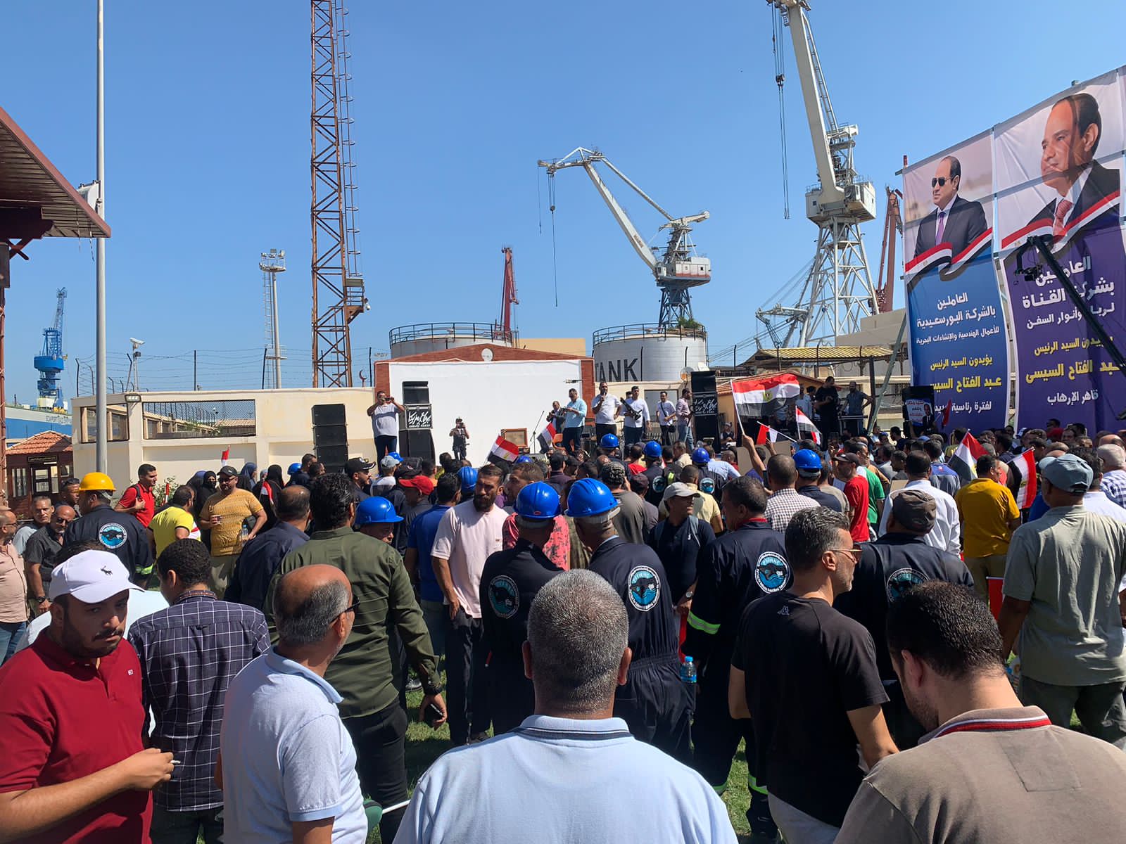 بأعلام مصر وصور الرئيس.. العاملون بقناة السويس يحتفلون بانتصارات أكتوبر