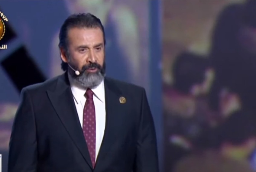ومن ثم قدم الثنائي كريم عبد العزيز ومنى زكي كلمة معا جاءت كالتالي: بلدنا كبيرة وعظيمة ومهما عدى عليها بتفضل واقفة واثبتة وصلبة، كل الشغل اللي حصل على أرضها آخر كام سنة بيقول إننا نقدر.. لإن الشعب اللي بينجز شغل خمسين سنة في أقل من خمس سنين شعب مينهزمش ومينكسرش ولو وقع بيقف تاني، ومش إحنا اللي بنقول كده ده التاريخ اللي بيقول كده.. هنكمل اللي بدأناه ونبني الجمهورية الجديدة.. والتحدي مهما كان صعب هنقدر عليه.. وزي ما عدينا اللي فات هنعدي اللي جاي علشان مصر اللي بنحلم بيها، وطول ما احنا إيد واحدة هنقدر ونوصل وكلنا فداء مصر وتحيا مصر يا ريس.