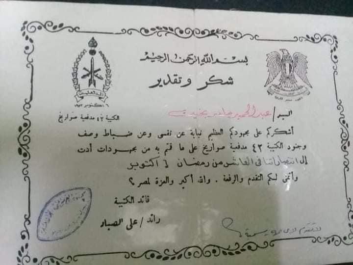في تمام الساعة الثانية ظهرًا في يوم 6 أكتوبر، وقف كل جندي مصري في مكانه على أتم استعداد للحرب، وأشار عبد الحميد: الساعة 2 الظهر عدت من فوقينا الطيارات، إحنا طلعت مننا كلمة الله أكبر لوحدها كده، والجيش كله بقى يقول الله أكبر الله أكبر من بداية الحرب لنهايتها، وكانت الكلمة بتهز السما كده وكانت بتدينا قوة غريبة مش عارفين جاية منين، وانتصرنا على إسرائيل وكنت من الناس اللي عبرت الخط تاني يوم.