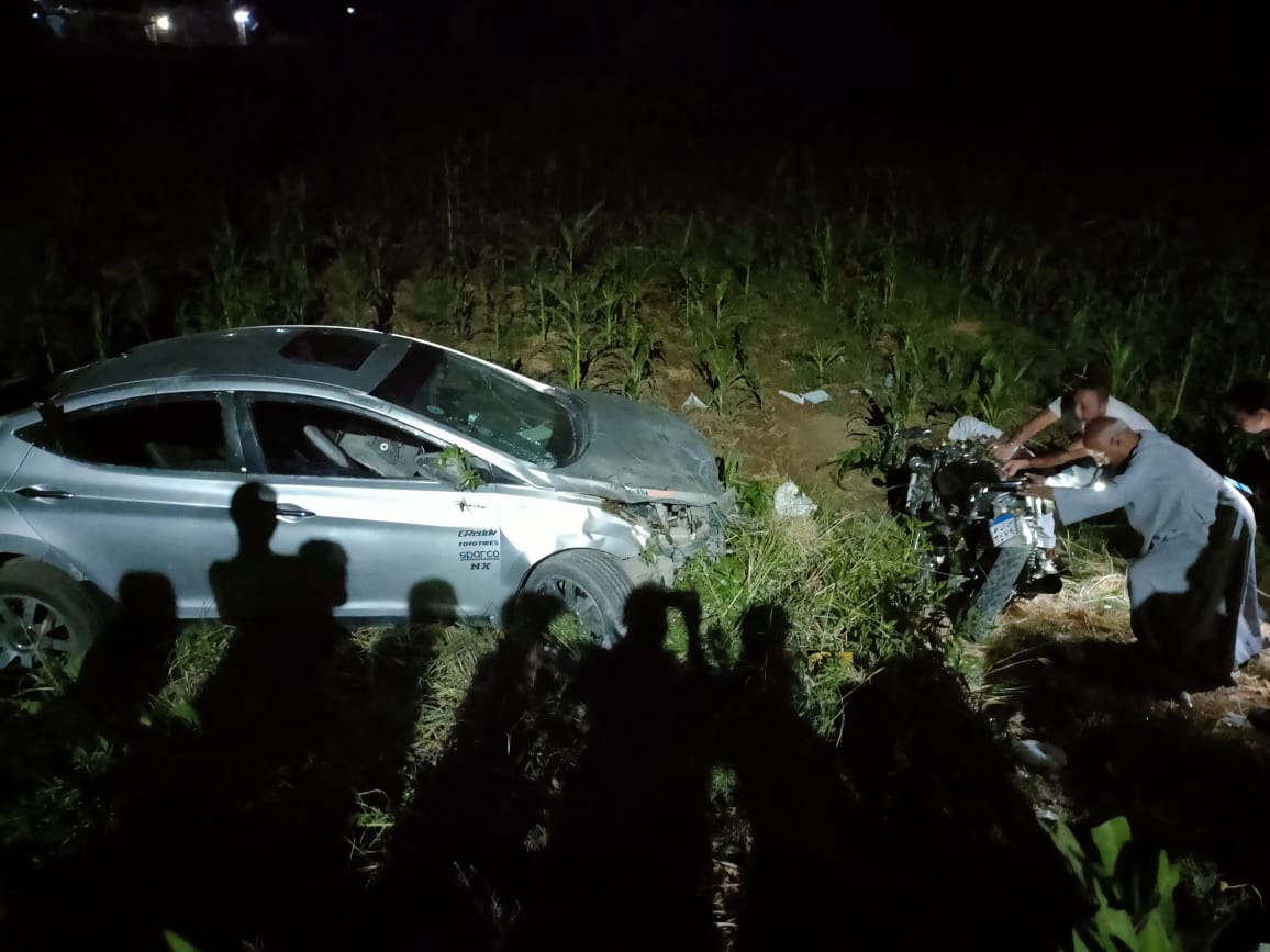 وتعود تفاصيل الواقعة إلى بلاغ تلقته مديرية أمن الأقصر من شرطة النجدة؛ يفيد بانقلاب سيارة ودراجة نارية في أرض زراعية على طريق الجولي فيل بالعوامية.