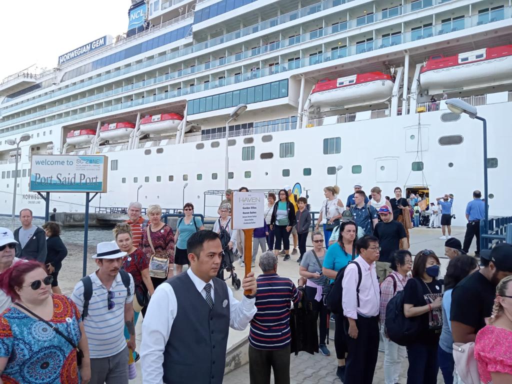 ميناء بورسعيد يستقبل 3428 سائحًا على متن السفينة NORWEGIAN GEM| صور وفيديو