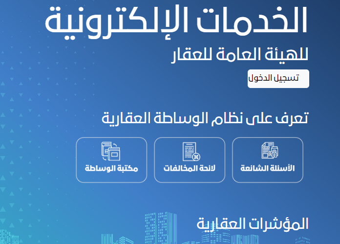 - قم بالدخول إلى الخدمات الإلكترونية للوساطة العقارية.