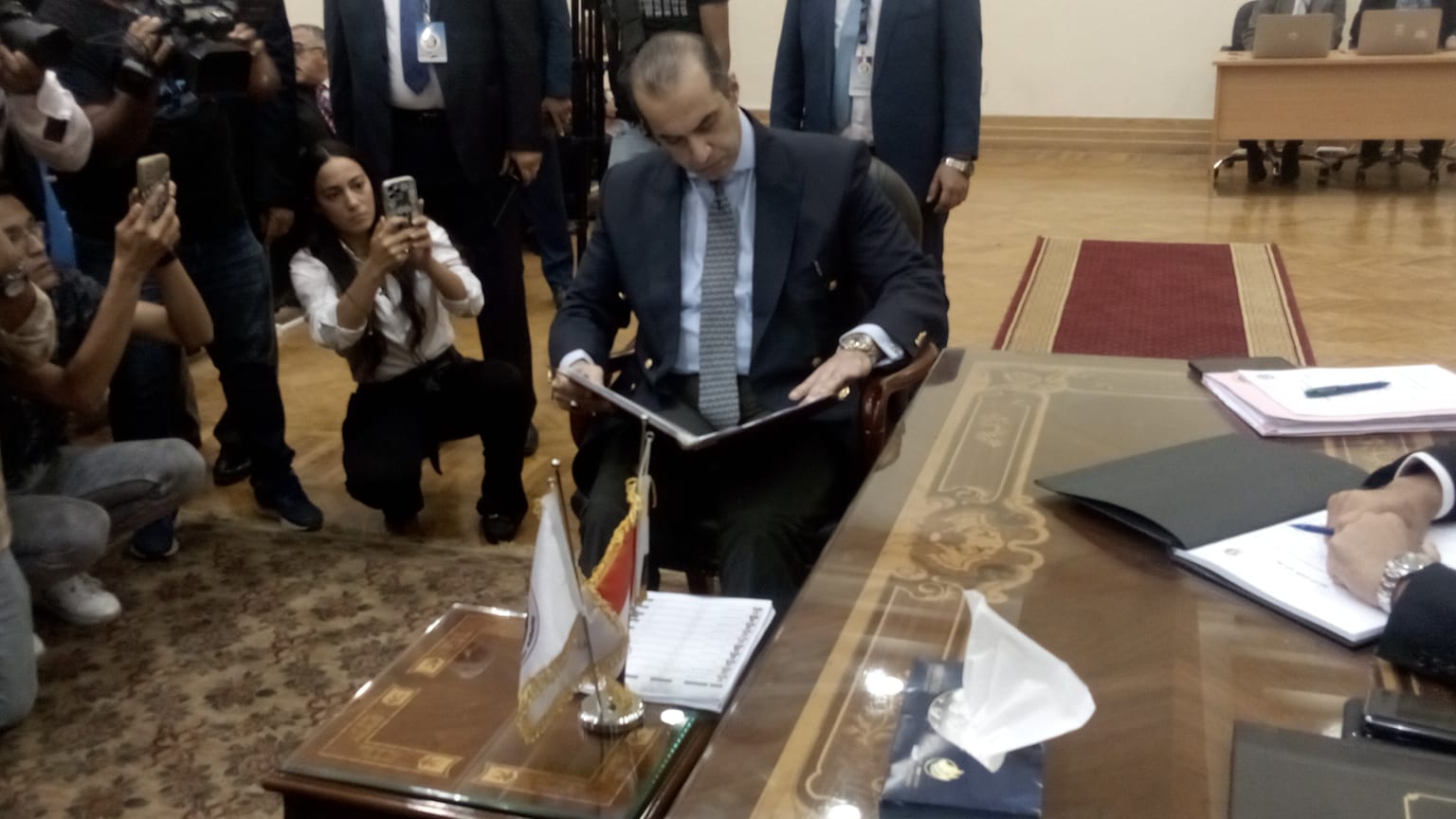 وكان في انتظار المرشح الرئاسي عبد الفتاح السيسي، المستشار محمود فوزي، رئيس الحملة الانتخابية الرسمية.