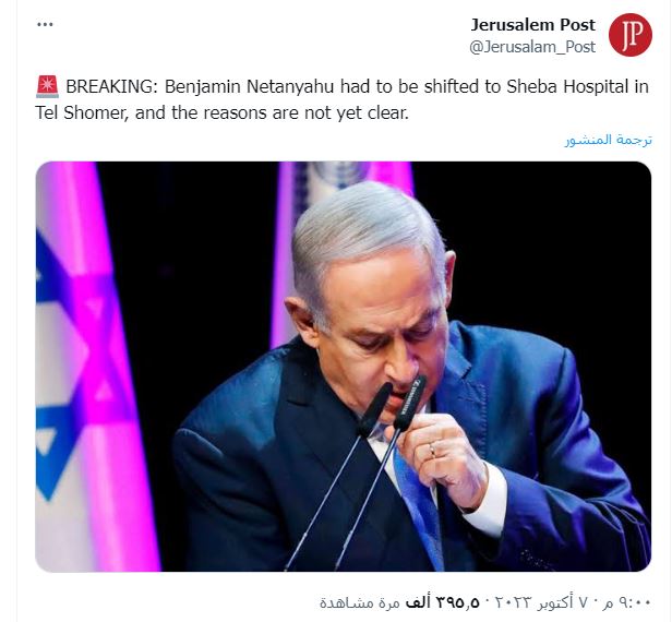 ونشر حساب وهمي يحمل اسم صحيفة جيروزاليم بوست، تغريدة مفادها أن رئيس الوزراء الإسرائيلي بنيامين نتنياهو نقل إلى مستشفى شيبا في تل شومر.