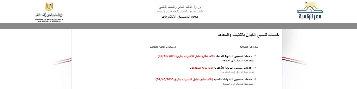 ظهرت نتيجة التحويلات بين الكليات والمعاهد ضمن تقليل الاغتراب 2023 لـ طلاب الثانوية العامة والدبلومات الفنية عبر موقع التنسيق الإلكتروني، وذلك للطلاب الذين لم يستفيدوا سابقًا من تقليل الاغتراب.