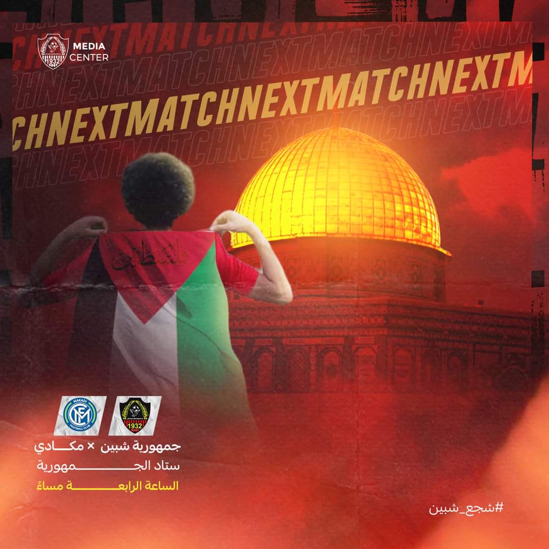 نشرت الصفحة الرسمية لنادي جمهورية شبين الصاعد حديثا لدوري المحترفين عن محافظة المنوفية، تضامنه مع الأخوة الفلسطينيين، بشأن الأحداث الجارية، وذلك بوضع علم فلسطين وقبة الصخرة التاريخية على إعلان موعد مباراته المقبلة.