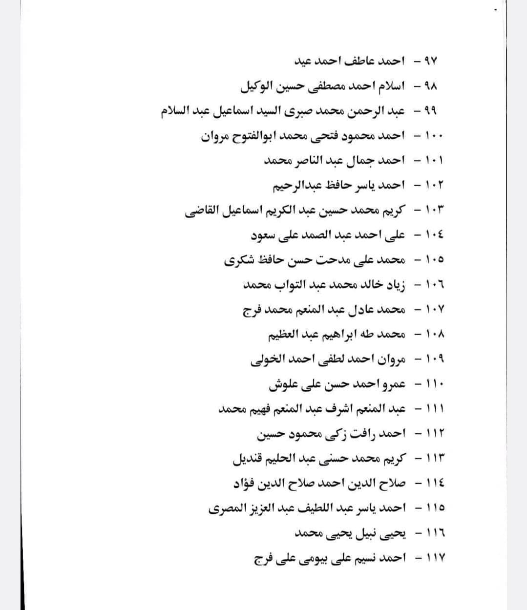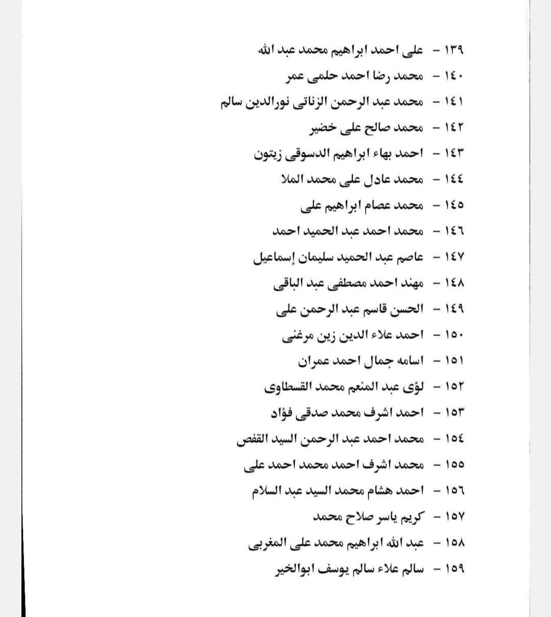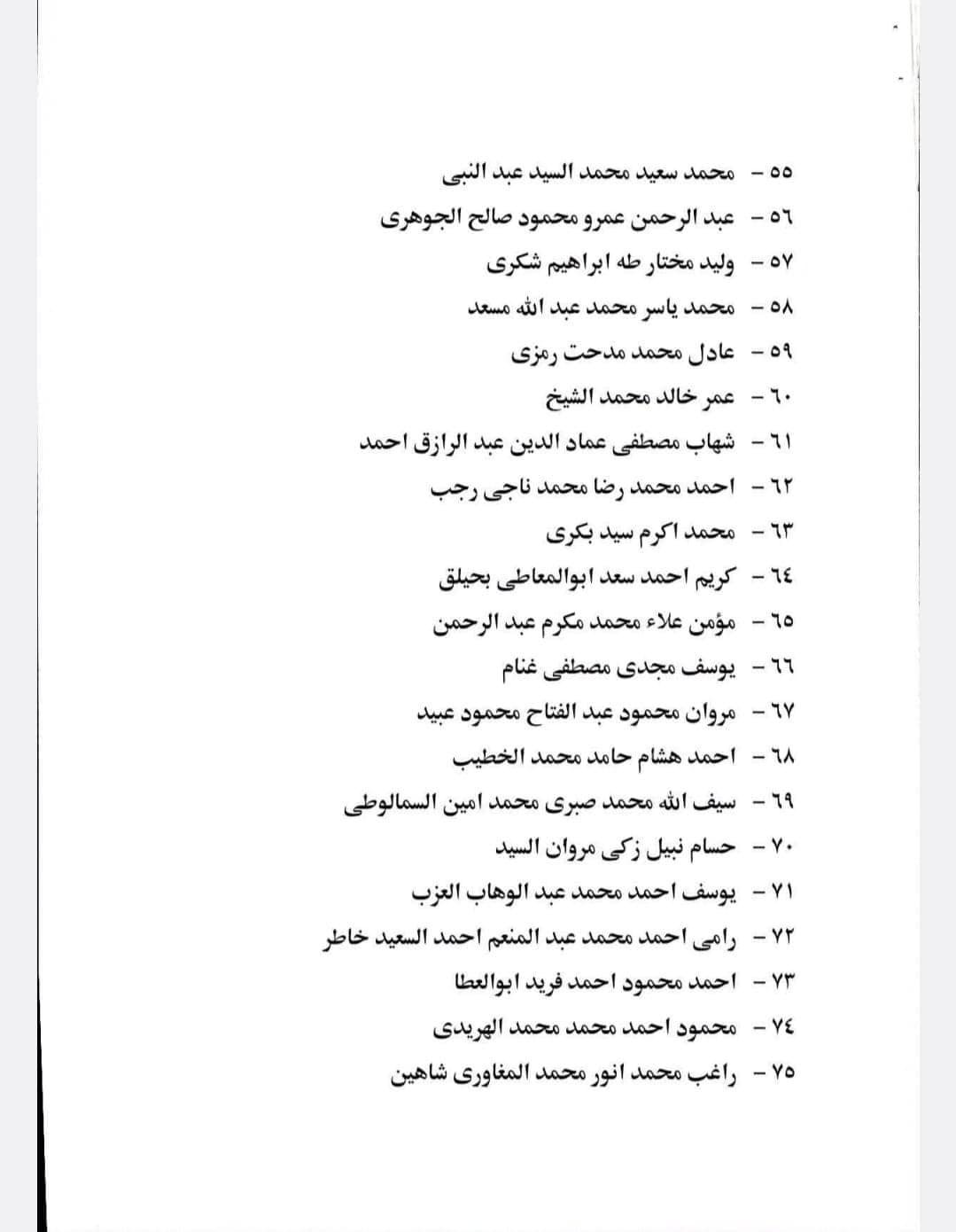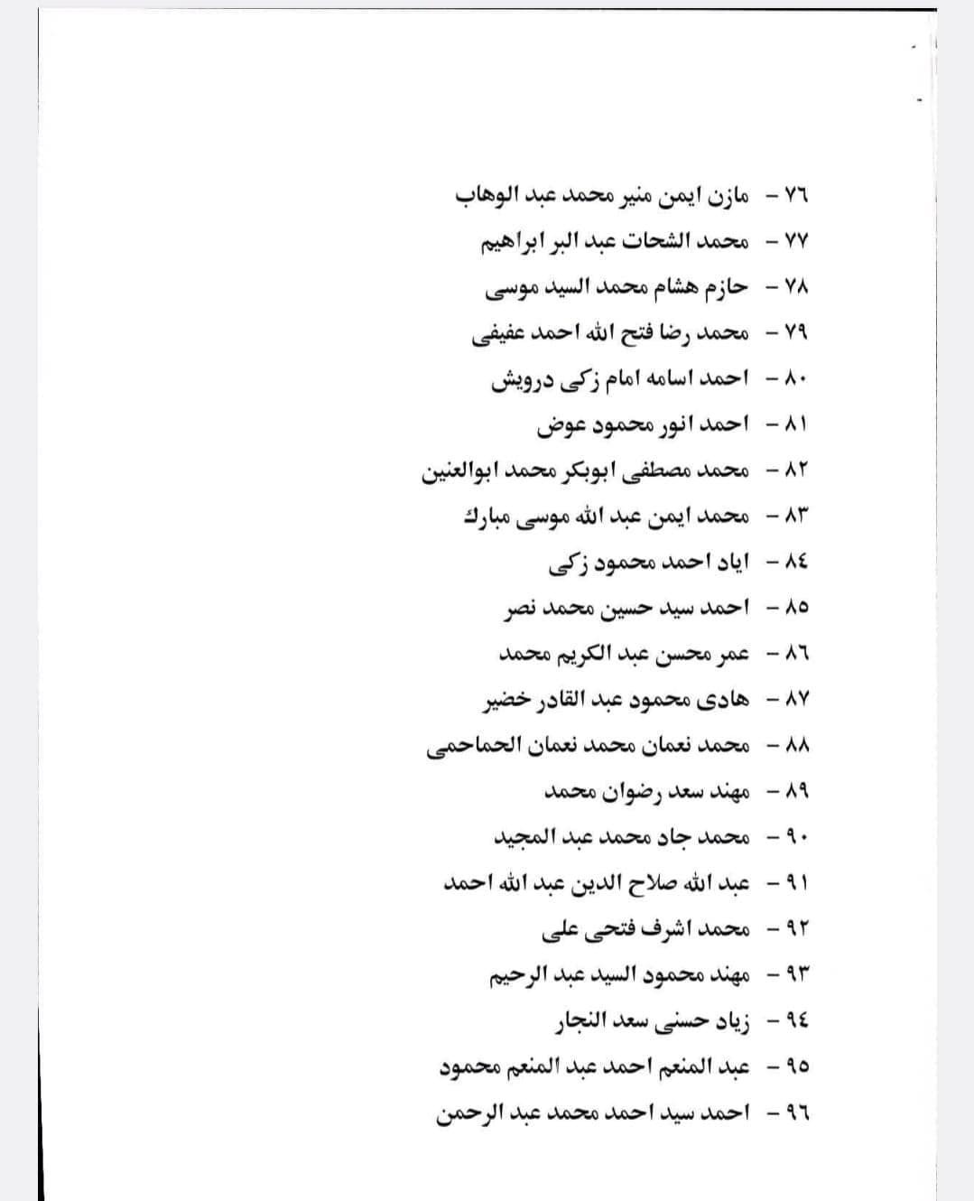 وجاءت قائمة أسماء المقبولين بالنيابة العامة، كالتالي: یاسین نبیل فتحی عمار، فداء حماده شعبان محمد السجيعي، على سمير علی محمد شرباش، يوسف عمرو يوسف محمد فؤاد، محمد نمیر نبیل محمد المهدى نجم، حسام الدین شعبان محمود احمد كريم محمد احمد الحافظ محمد زکی، عبد الله محمود محمد محمد ابراهیم داود، زکریا امجد محمد ابوالفتوح، احمد عبد الحليم محمد منصور علی، محمد اشرف عبد النبی عبد الجواد شاهین، اسلام عماد السعيد حامد كحله.