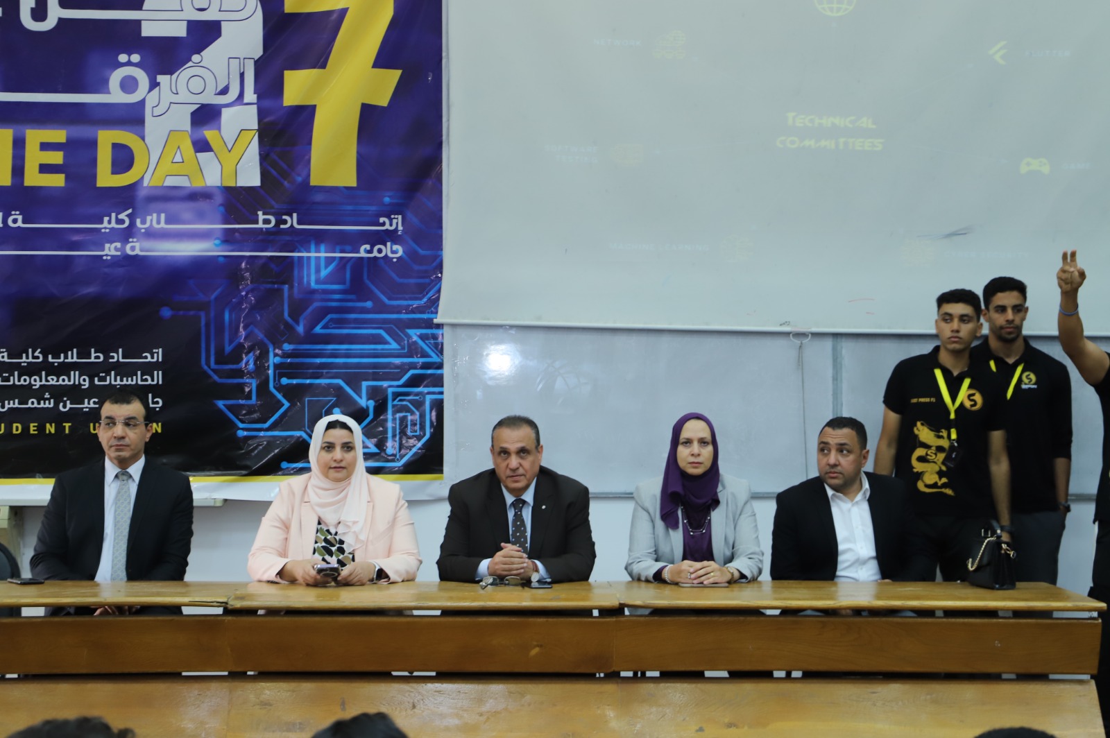 جاء ذلك تحت رعاية الدكتورة غادة فاروق القائم بأعمال رئيس جامعة عين شمس، والدكتور عبد الفتاح سعود نائب رئيس جامعة عين شمس لشؤون التعليم والطلاب، وبحضور الدكتورة هالة مشير وكيل كلية الحاسبات والمعلومات لشؤون التعليم والطلاب، والدكتور حاتم ربيع الأستاذ بكلية الآداب ورائد عام أسرة طلاب من أجل مصر بجامعة عين شمس.