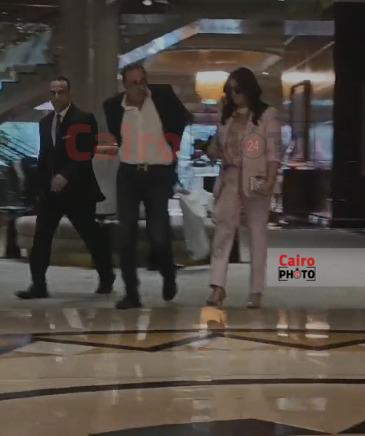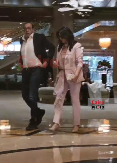 وظهرت منى الشاذلي بإطلالة فورمال، وارتدت بدلة باللون الزهري، رفقة زوجها سمير يوسف، أثناء دخولهما الزفاف.
