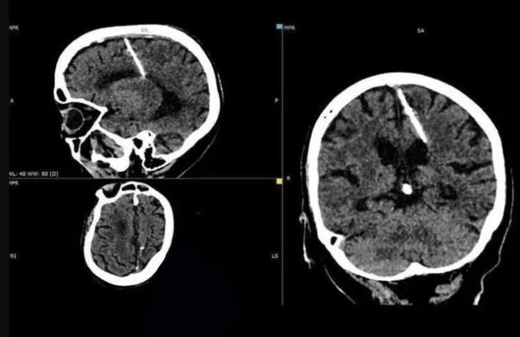 من غير الواضح كيف نجت المرأة البالغة من العمر 80 عامًا من محاولة قتل والديها، ربما اعتبروا نجاتها معجزة وقرروا أنها كانت كذلك ولكن الأمر الأكثر لفتًا للانتباه هو حقيقة أنها لم تعان أبدًا من صداع شديد، بسبب وجود جسم غريب في دماغها، لولا الآشعة المقطعية الأخيرة، لم تكن لتعرف بوجودها هناك.