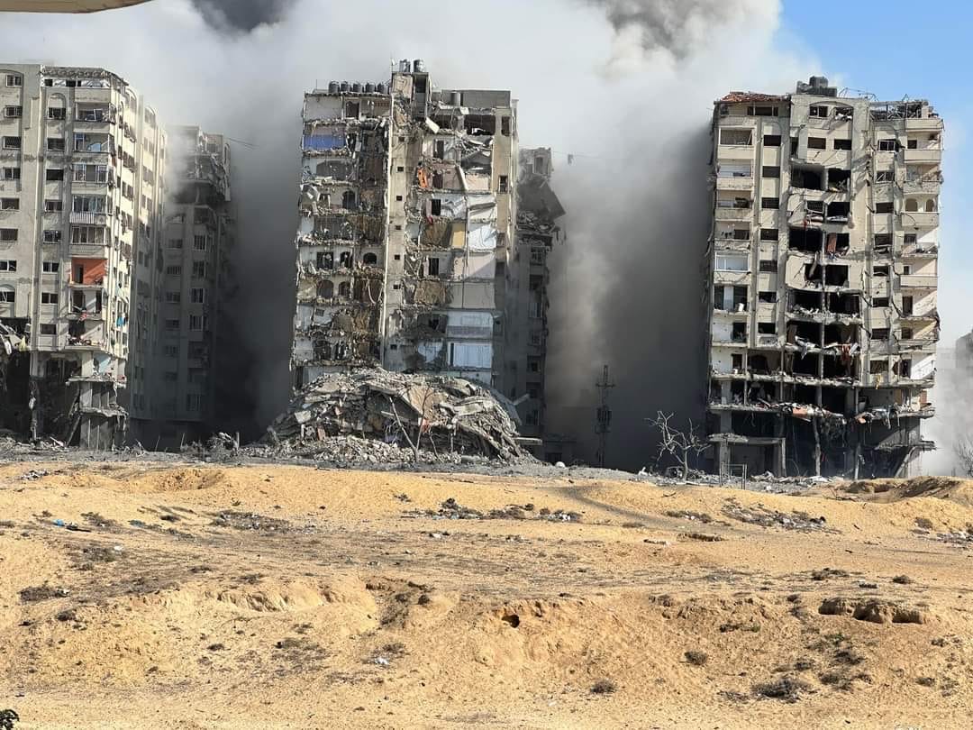 وفي السياق ذاته، قال السكان الذين تم قصف أبراجهم السكنية بالفعل، إنهم توجهوا للاحتماء بفندق المشتل، مع عدد من الأسر الأخرى الذين تم قصف منازلهم، لكنه أضحى هو الآخر معرضا للانهيار فوق رؤوسهم بسبب تعرض المنطقة لموجة من القصف العنيف.