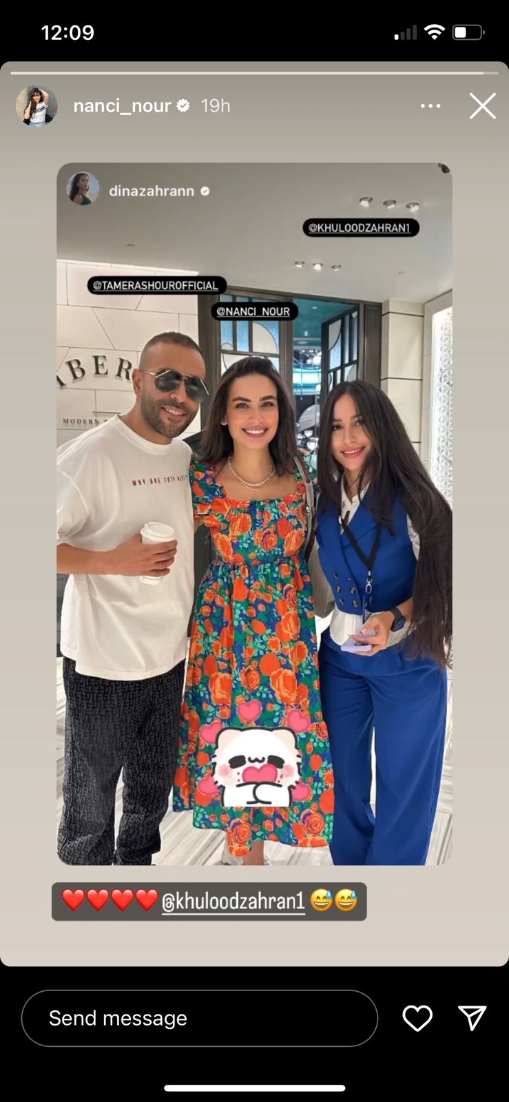 ونشرت نانسي نور الصورة عبر حسابها الشخصي بموقع انستجرام، وظهرت فيها رفقة تامر عاشور والإعلامية خلود زهران.