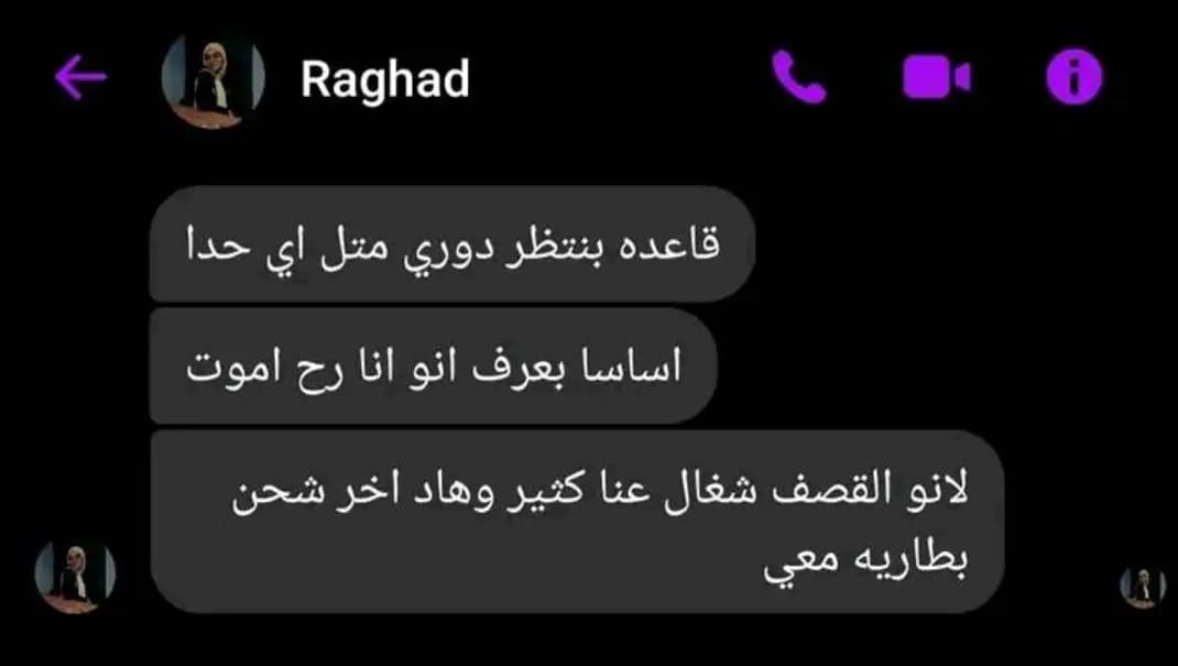 ونشر حاتم صورة تحمل رسالة لـ رغد هاني الطالبة بكلية الطب قصر العيني جامعة القاهرة، حيث كتبت رغد: قاعدة أنتظر دوري مثل أي حد، وأساسا عارفة إن أنا هموت، لأن القصف شغال عندنا كتير وده آخر شحن بطارية معي.