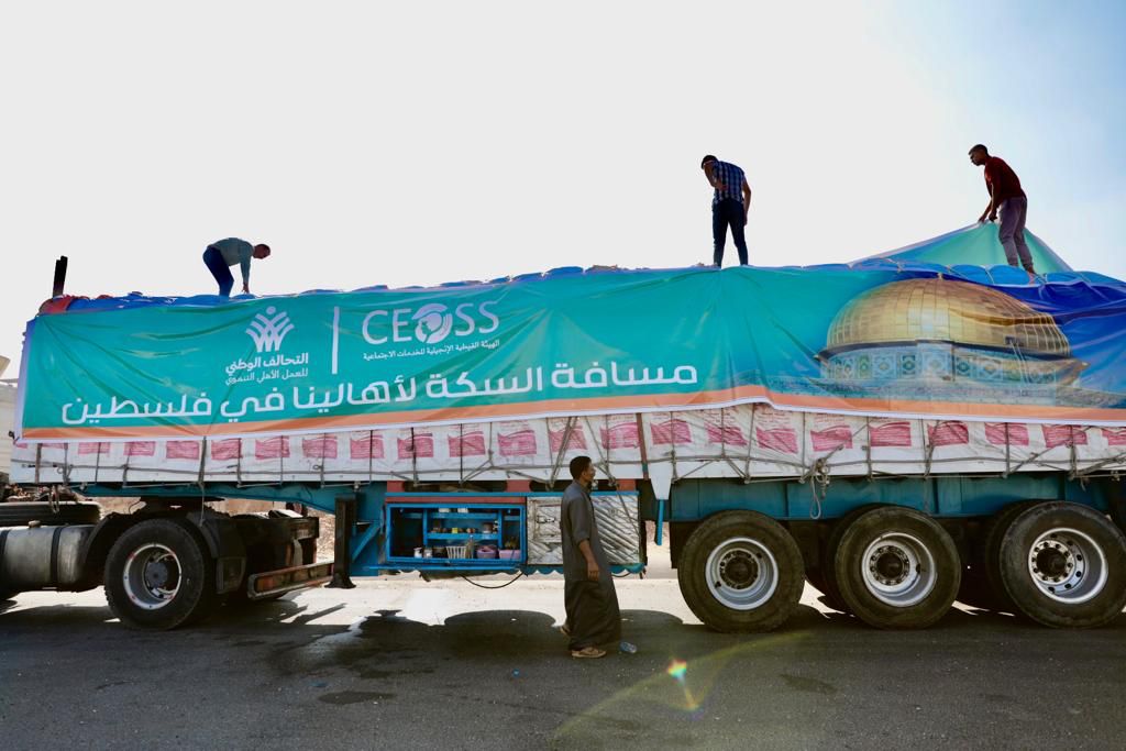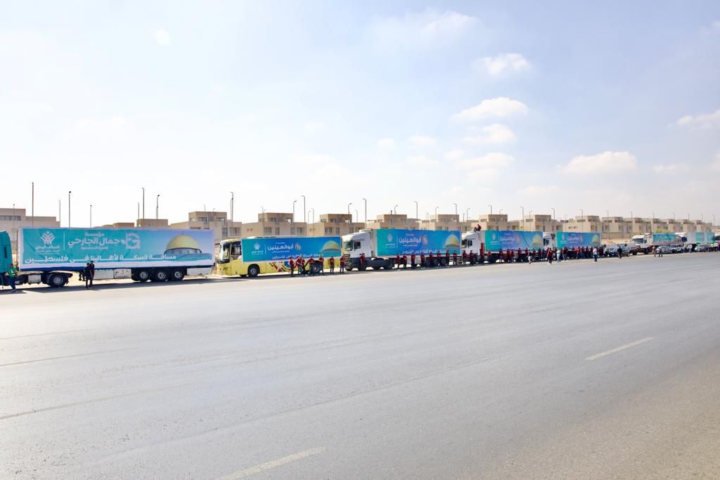 انطلقت القوافل الشاملة للتحالف الوطني للعمل الأهلي التنموي وحياة كريمة، اليوم السبت، والتي تضم قرابة 106 قاطرات محملة بكميات ضخمة من المساعدات الإنسانية تتضمن 1000 طن من المواد الغذائية واللحوم و40 ألف بطانية وأكثر من 300 ألف علبة أدوية والمستلزمات الطبية، بالإضافة إلى الملابس والاحتياجات اللازمة، وذلك رفقة طاقم طبي من كافة التخصصات كمحاولة لتخفيف الأوضاع على الشعب الفلسطيني جراء الاعتداء الإسرائيلي، وسقوط العديد من الضحايا والمصابين.