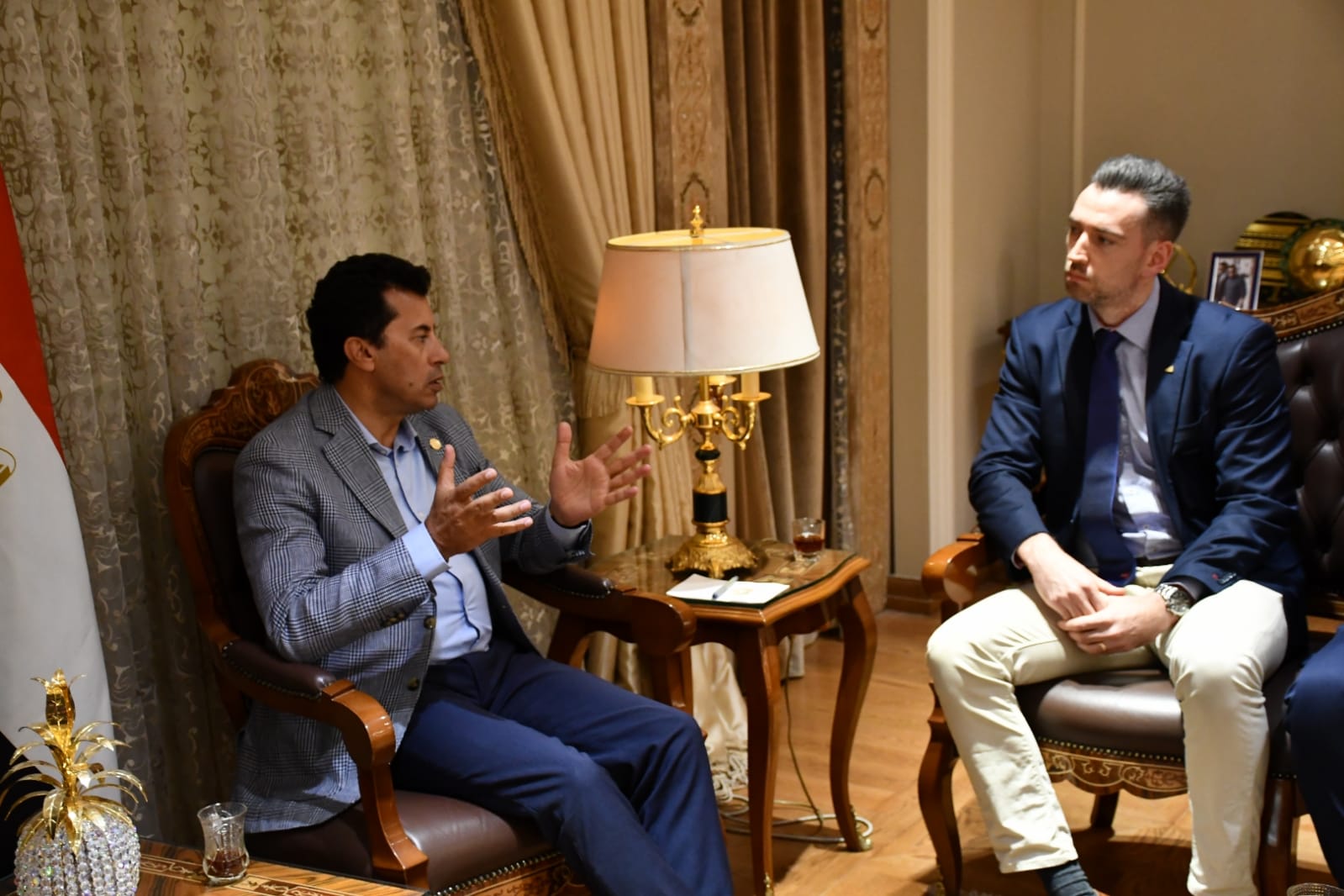 وزير الرياضة يلتقي مدير التطوير بالاتحاد الدولي للريشة الطائرة بالعاصمة الإدارية الجديدة