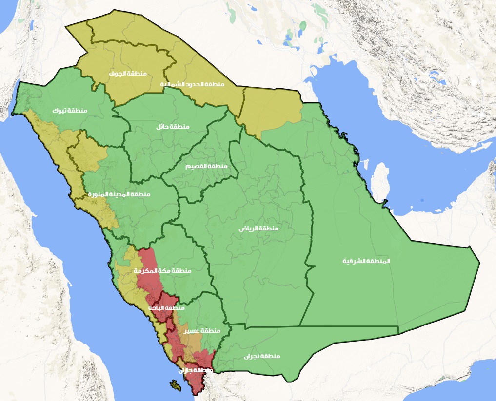 أعلن المركز الوطني للأرصاد السعودي، تفاصيل حالة الطقس اليوم في السعودية، حيث أطلقت الأرصاد الإنذار الأحمر على مناطق من مكة المكرمة وجازان، عسير، الباحة، وجنوب المدينة المنورة.