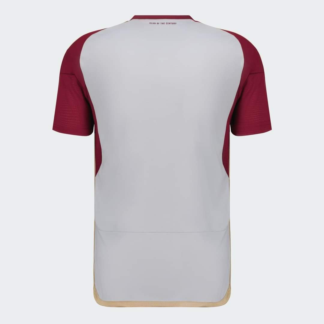 وجاء قميص الأهلي الثالث لهذا الموسم باللون الرمادي الفاتح مع وجود لون عنابي على الأكتاف مع خطوط ذهبية.