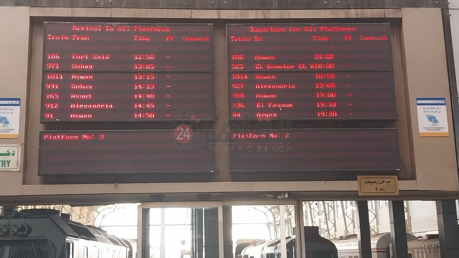 وتواصل أحد المواطنين مع القاهرة 24، والذي أكد أن اللوحة الرئيسية للتعريف بمواعيد انطلاق القطارات داخل محطة مصر لا تعمل كما كانت من قبل، مشيرا إلى أن معرفة رقم الرصيف يكون بطريقين، بسؤال مكتب الاستعلامات بالمحطة، أو الاستماع للإذاعة الداخلية للمحطة.