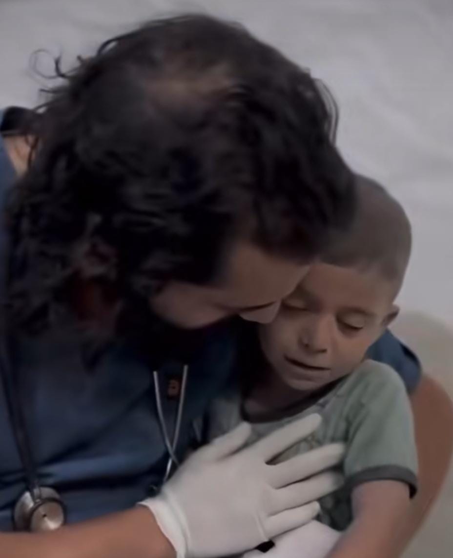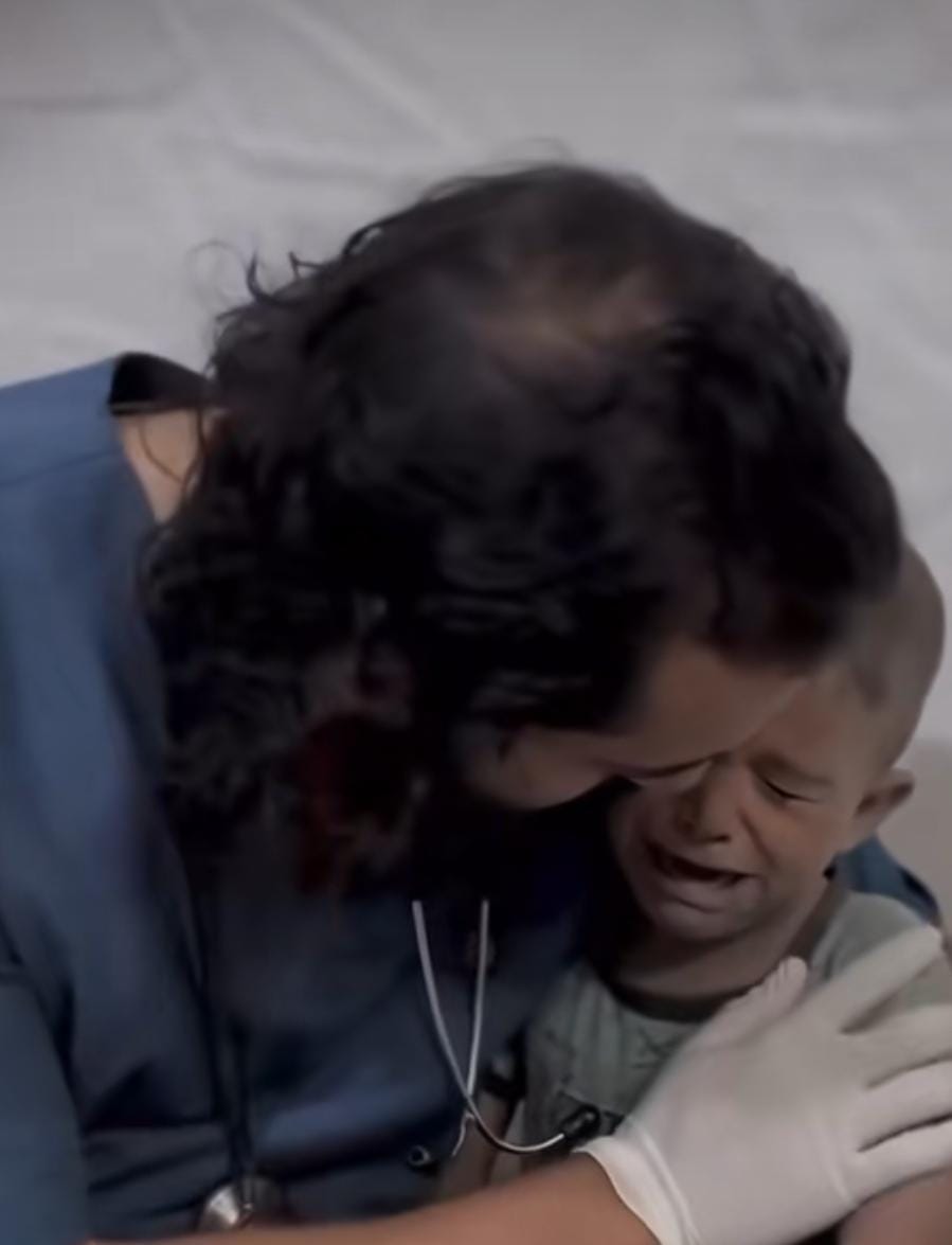 وظهر في أحد الفيديوهات، طفل في المستشفى، ترتجف أطرافه من الخوف نظرًا لاستيقاظه على صوت قصف، وكان يومئ في صمت ردًا على الأسئلة الموجهة له بالإيجاب، حتى احتضنه الطبيب المعالج قائلا: ليش خايف، خلص القصف انتهى، فينفجر الطفل بالبكاء على إثر تلك الكلمات.