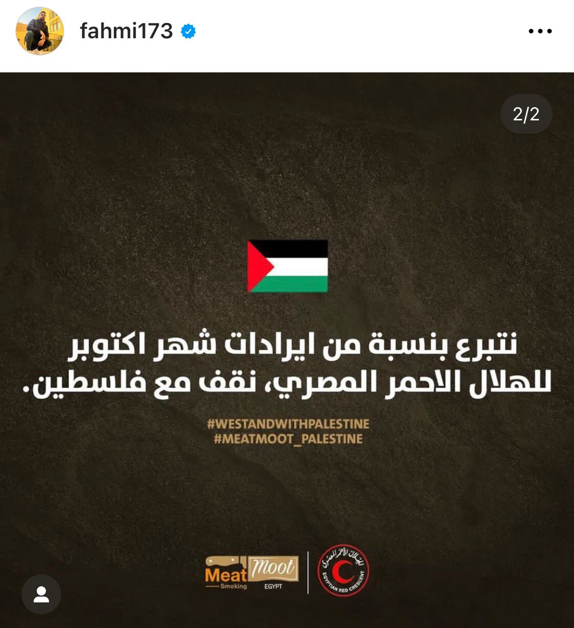وشارك أحمد فهمي منشورًا عبر حسابه الشخصي بموقع انستجرام، وعلق قائلًا: نتبرع بنسبة من إيرادات شهر أكتوبر لصالح الهلال الأحمر
