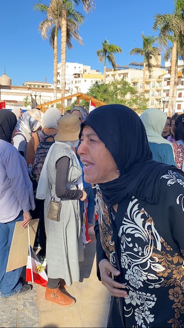 وهتفت سيدة أقصرية بين المتظاهرين بميدان أبو الحجاج، باكية وهي تقول: ساكتين ليه لازم الكل يتحرك الأمة العربية والإسلامية جسد واحد ولازم كلنا نحس ببعض.
