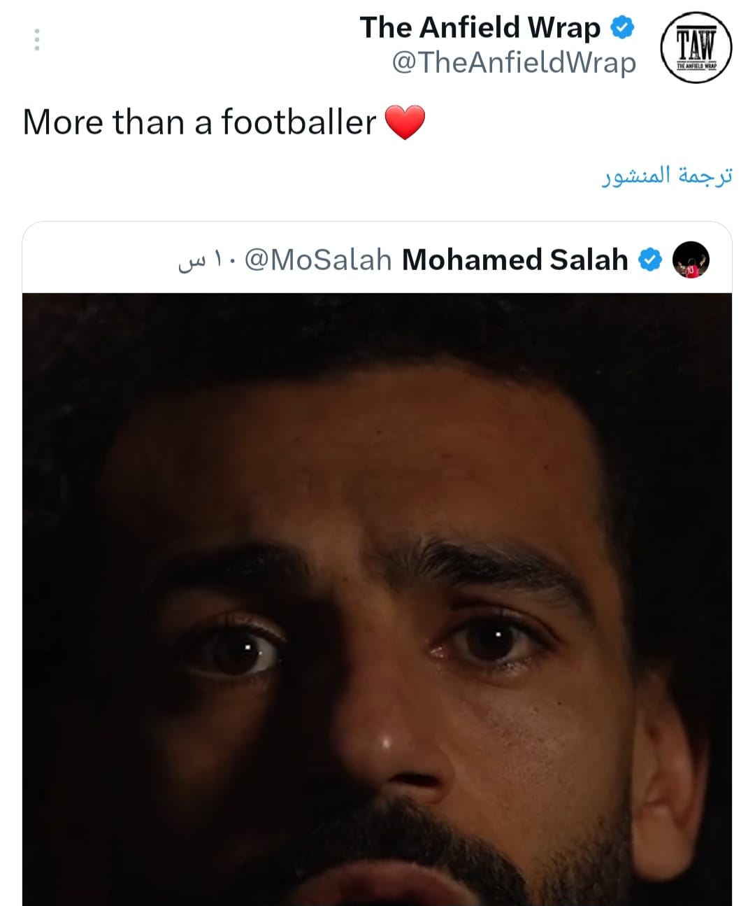 وقالت صحيفة أنفيلد البريطانية عبر حسابها الرسمي على موقع التواصل الاجتماعي تويتر، إن لاعب منتخبنا الوطني محمد صلاح المحترف ضمن صفوف فريق ليفربول أكثر من مجرد لاعب بعد خطابه.