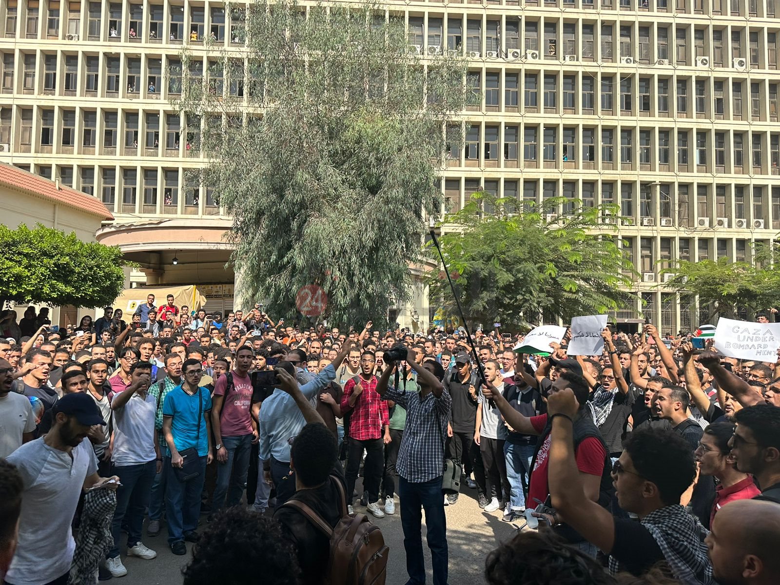 نظم عدد كبير من طلاب جامعة القاهرة، وقفة احتجاجية وذلك تضامنا مع أهالي غزة ودعم صمودهم ضد الاحتلال الإسرائيلي.