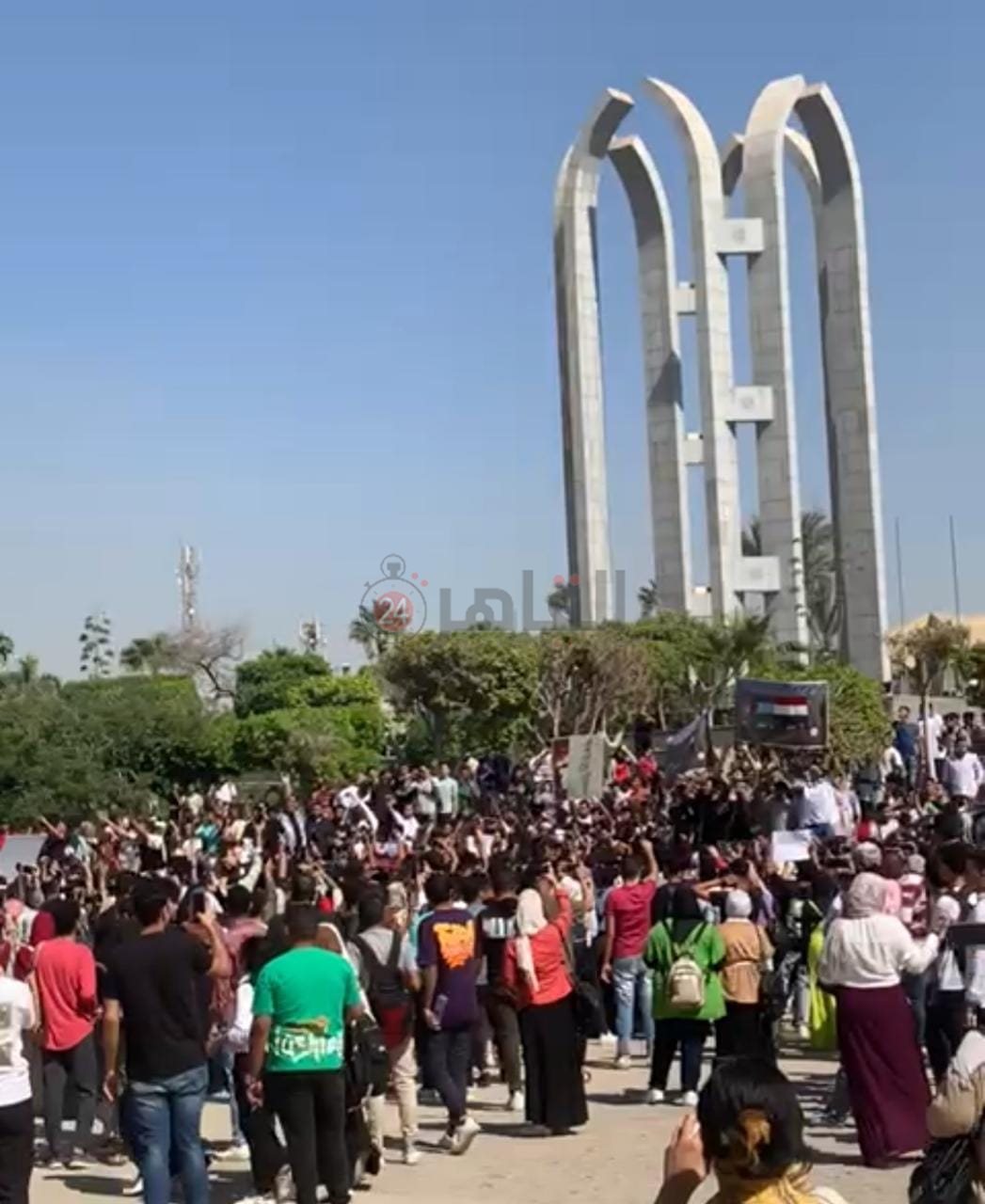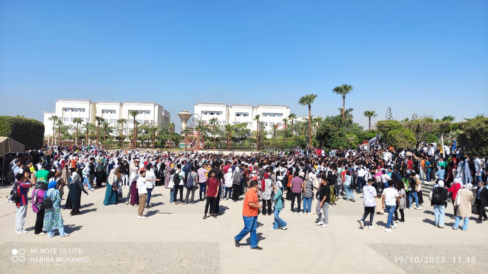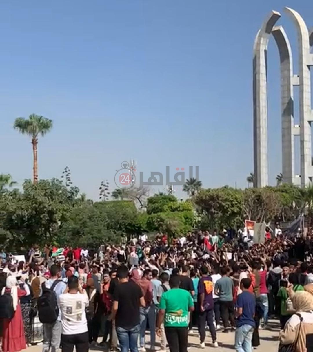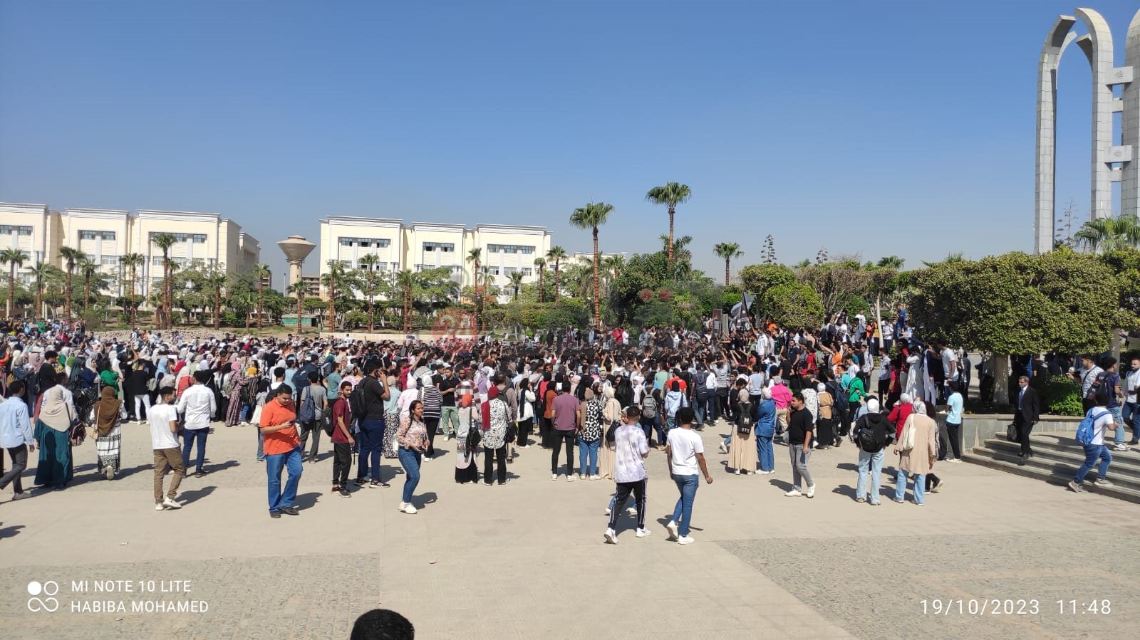 نظم عدد كبير من طلاب جامعة حلوان، وقفة احتجاجية تضامنا مع أهالي غزة ودعم صمودهم ضد الاحتلال الإسرائيلي.